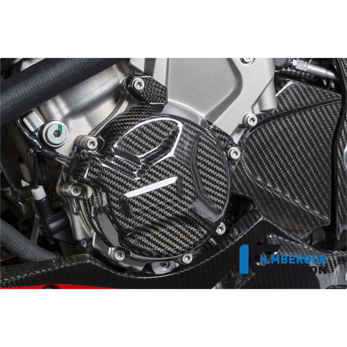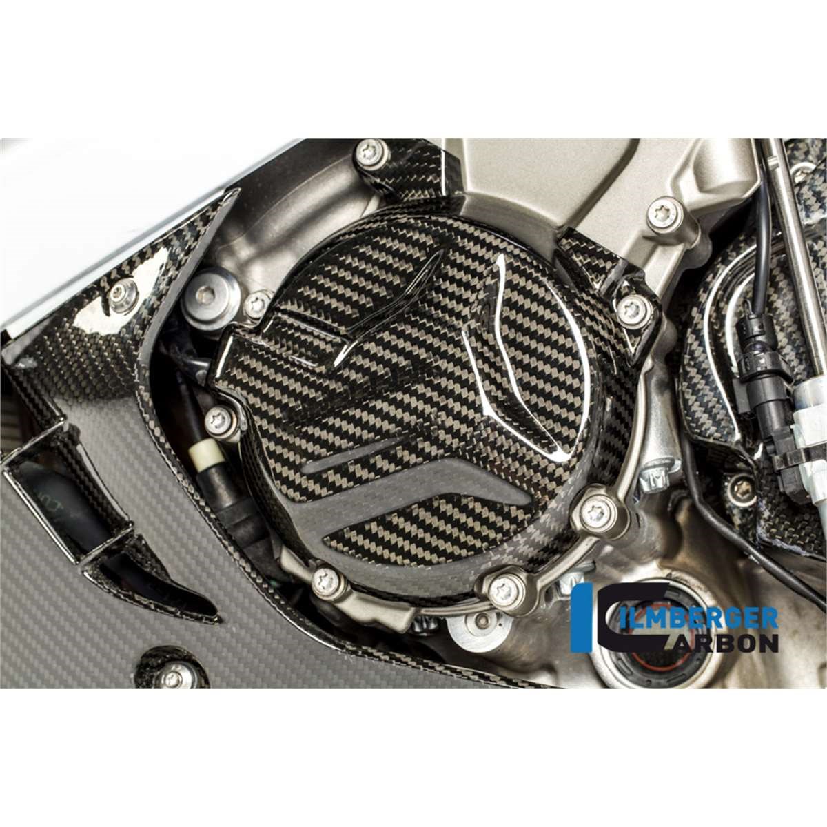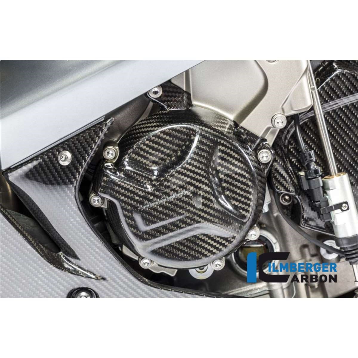 Die Lichtmaschinenabdeckung in Carbon für die BMW S 1000 R (2014-aktuell) / S 1000 RR Straße (2010-aktuell) / HP 4 (2012-aktuell) wird teilweise mit den Lichtmaschinendeckelschrauben mit verschraubt und im vorderen Bereich zusätzlich mit einem kleinen Punkt am Lichtmaschinendeckel verklebt.