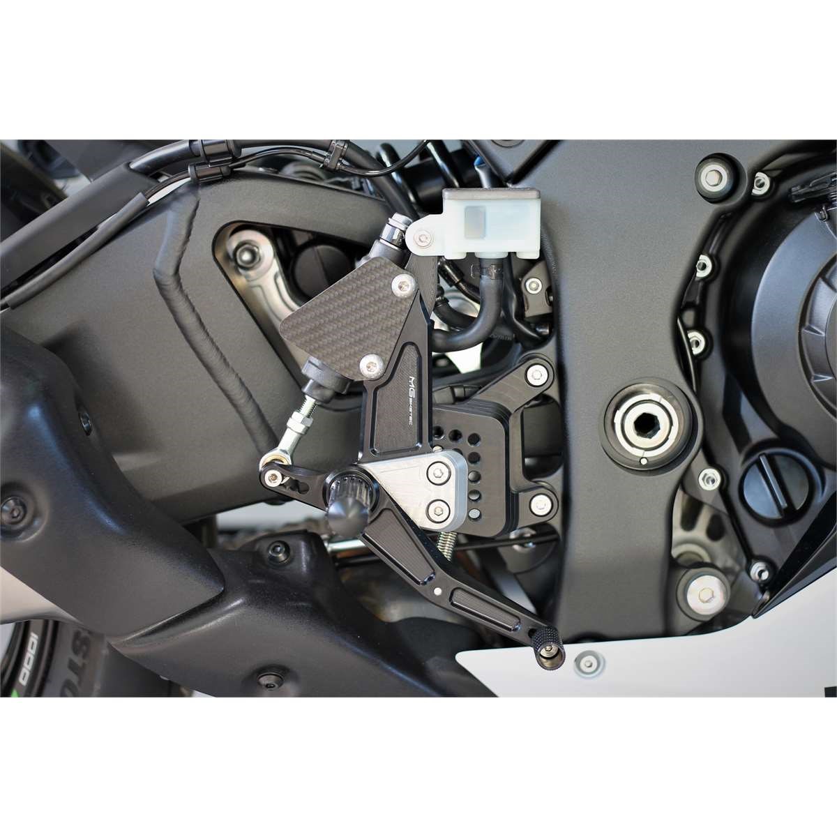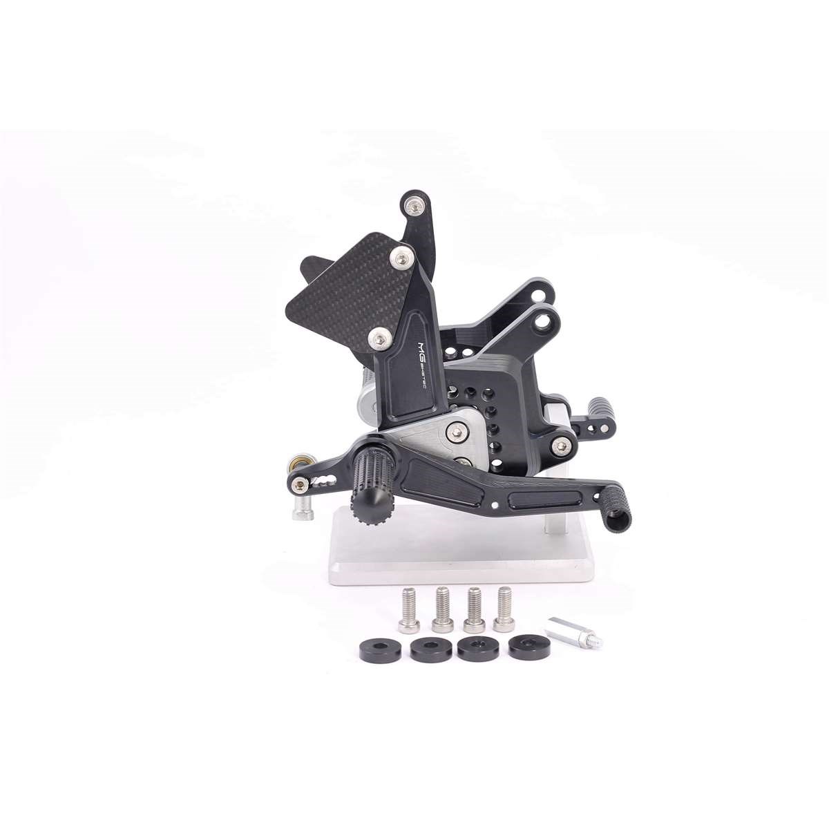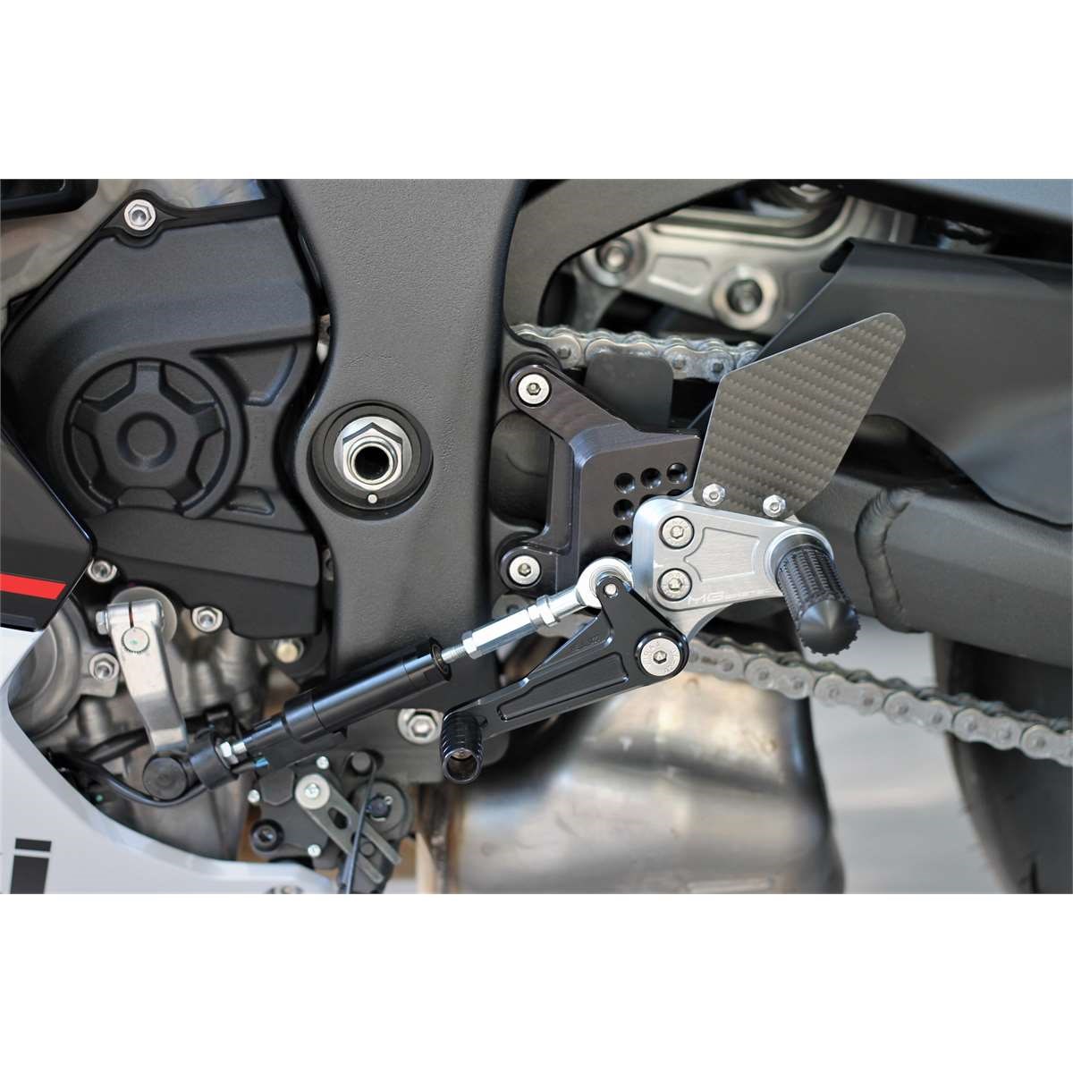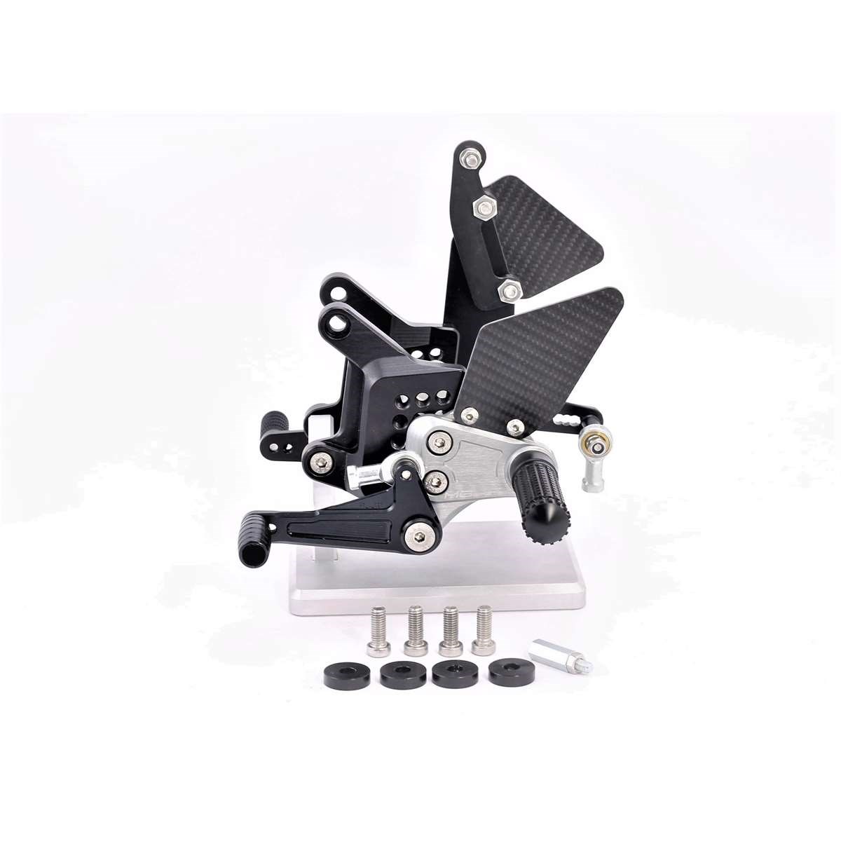 Rennsport erprobte Fussrastenanlage, voll ergonomisch verstellbar in 9 Positionen und bis zu 20 mm