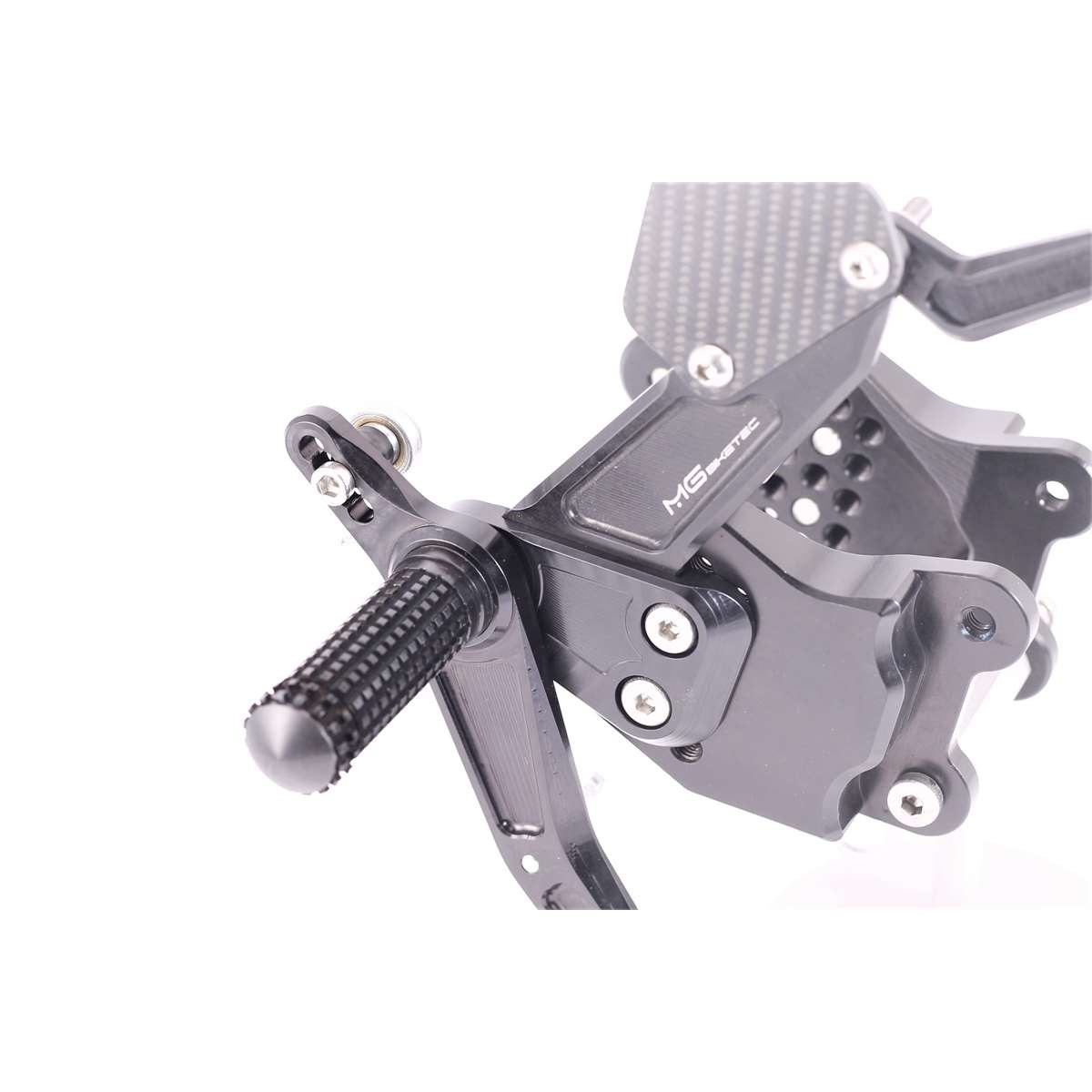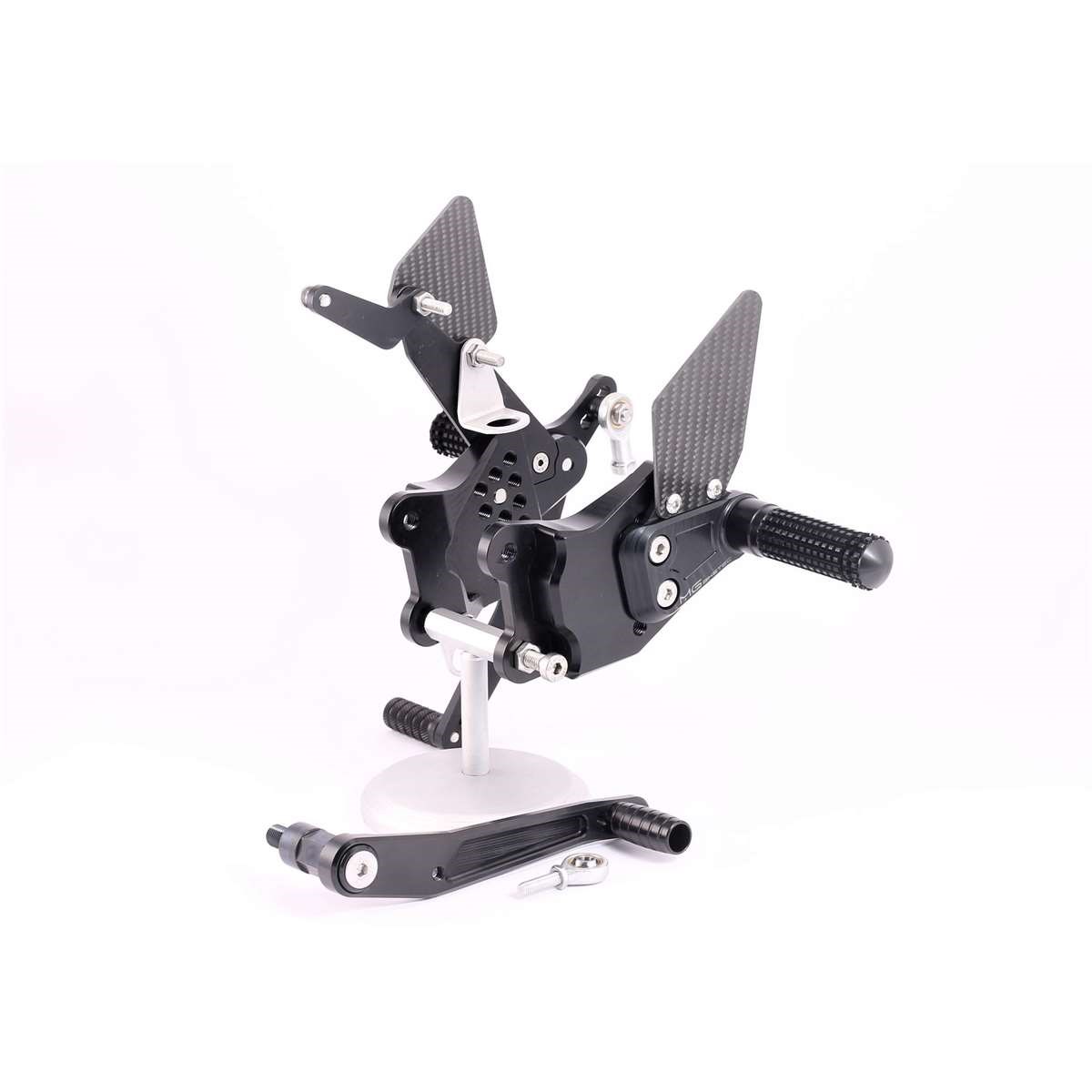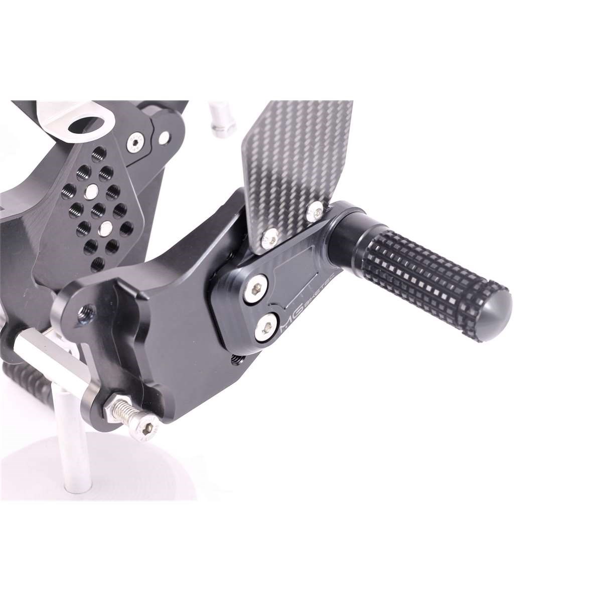 Rennsport erprobte Fussrastenanlage, voll ergonomisch verstellbar in 9 Positionen und bis zu 20 mm