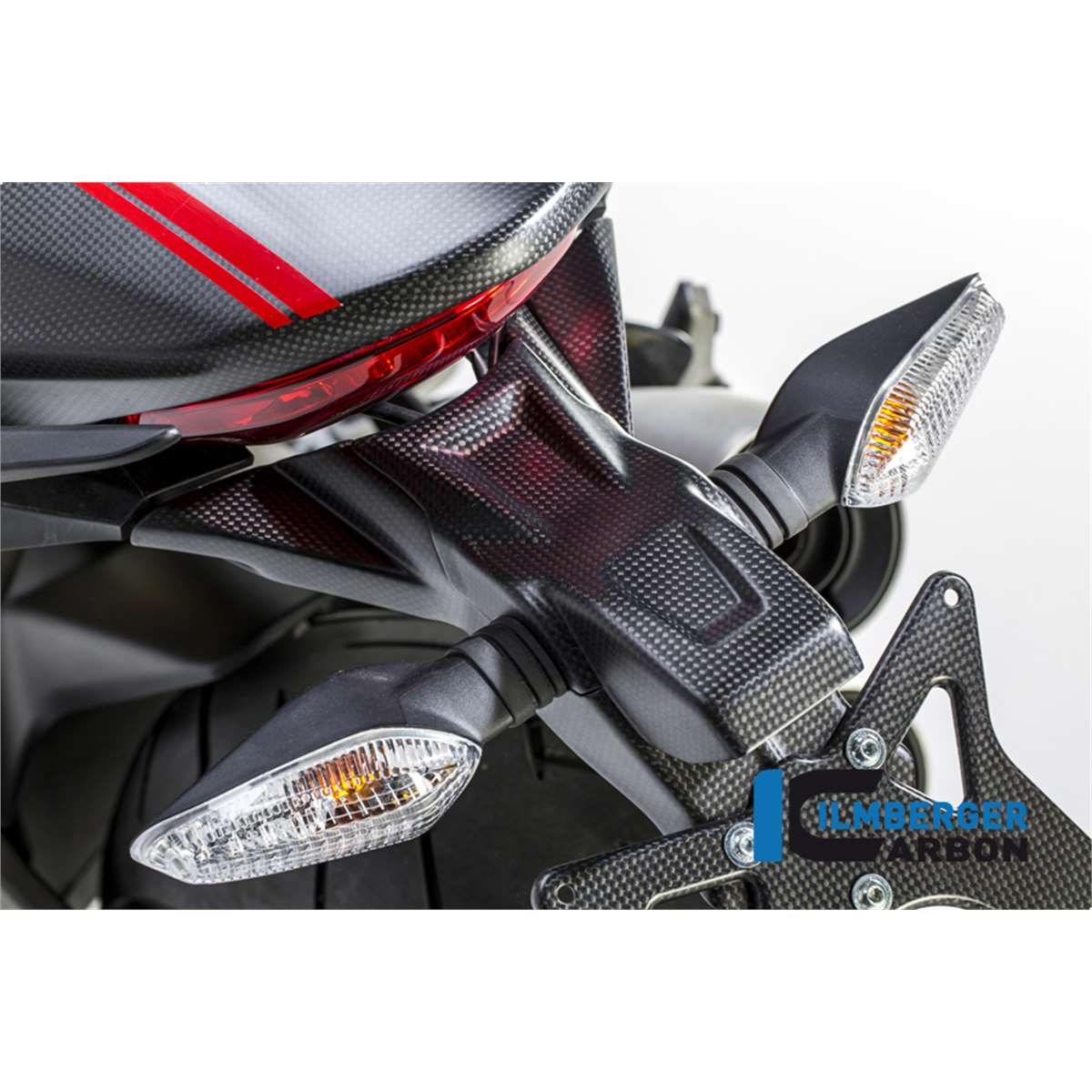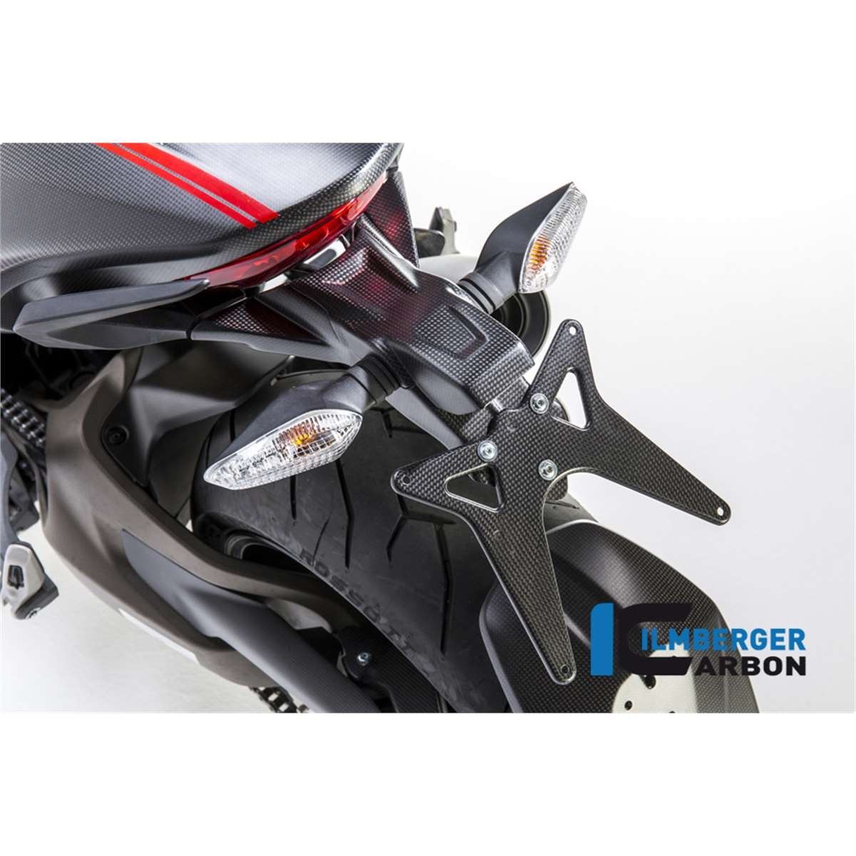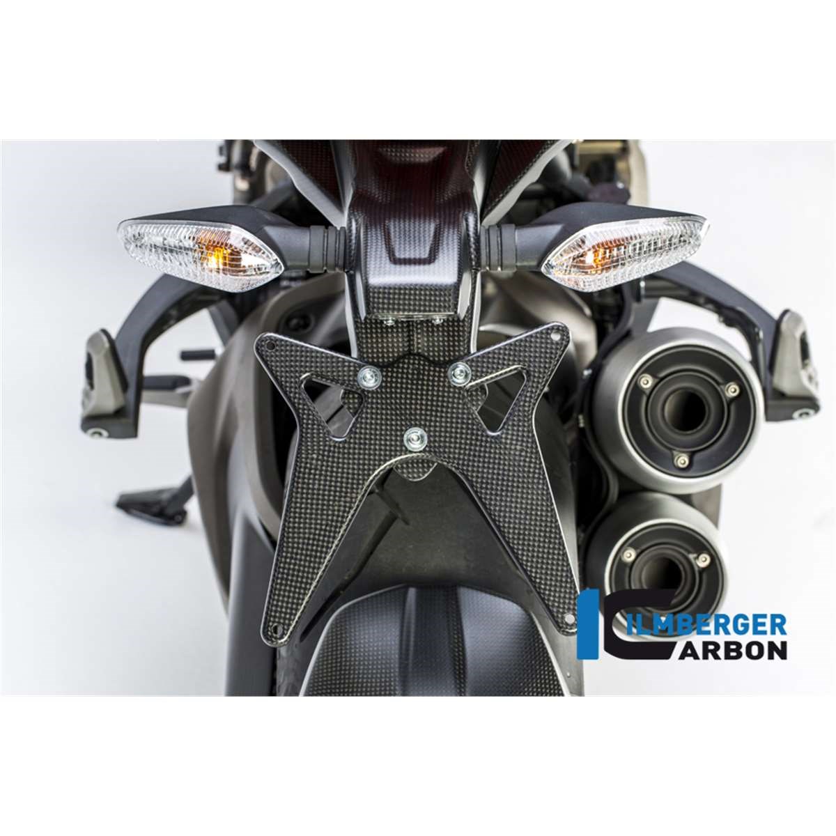 Der obenliegende Kennzeichenträger für die Ducati Monster 1200 und Monster 1200 S wird komplett in Carbon gefertigt und ersetzt den originalen untenliegenden Kennzeichenträger. Dieser Kennzeichenträger wird mit matter Oberfläche geliefert.