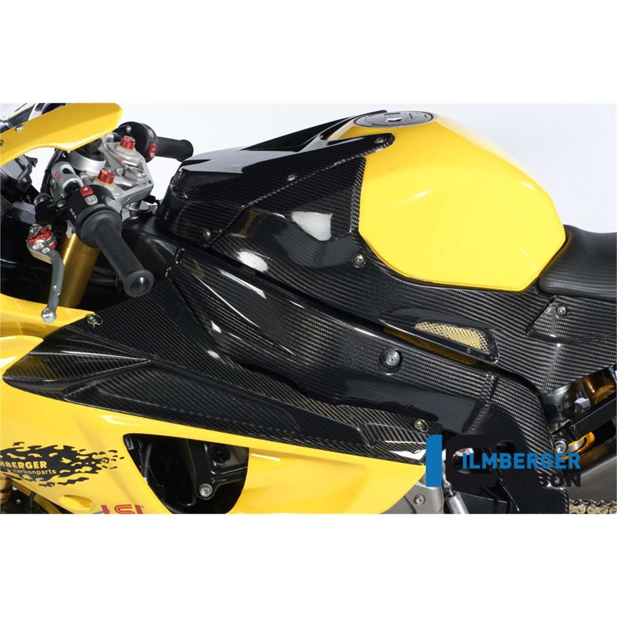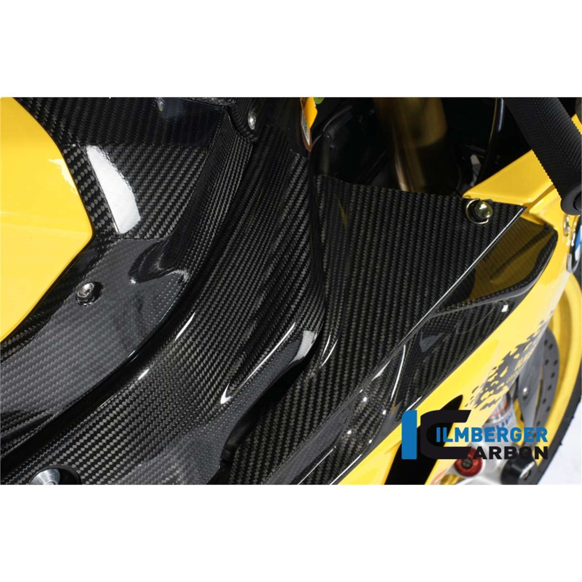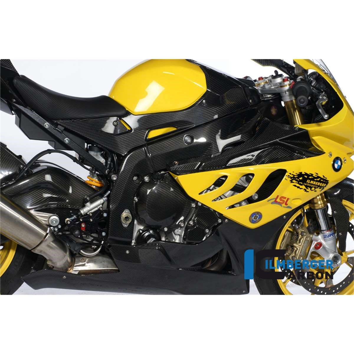 Die Rahmenabdeckungen in Carbon für die BMW S 1000 RR werden mit Hilfe der bereits an den Carbonteilen angebrachten Klebestreifen am Rahmen aufgeklebt.