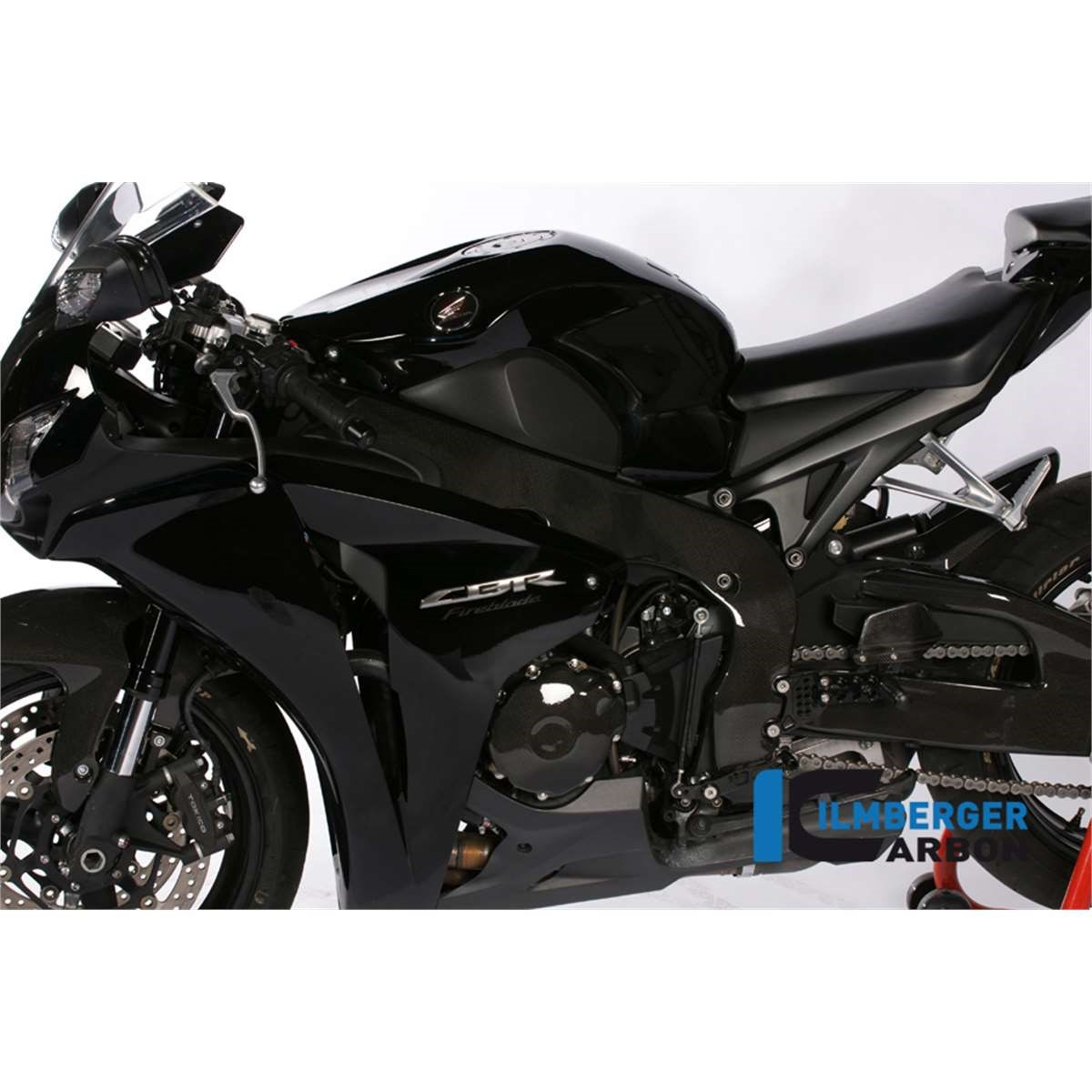 Die Rahmenabdeckung in Carbon für die Honda CBR 1000 RR ergänzt das Fahrzeug und sorgt für einen zusätzlichen Schutz des Fahrzeugs vor Beschädigungen. Die Montage der Teile erfolgt über mitgelieferte Klebestreifen. Das Carbonteil wurde nach den neuesten Richtlinien im Autoklaven komplett aus Prepreg (siehe FAQ) Material gefertigt und im nächsten Schritt, wie bei uns üblich, zum Schutz gegen Umwelteinflüße mit einer klaren Kunststoffbeschichtung überzogen. Diese Kunststoffbeschichtung übertrifft den sonst üblichen Klarlacküberzug in der Schutzwirkung, Kratzfestigkeit und Beständigkeit enorm. Aber nicht nur technisch kann die Beschichtung punkten, sondern sie unterstreicht auch die dreidimensionale Wirkung der Carbonstruktur nochmals deutlich.