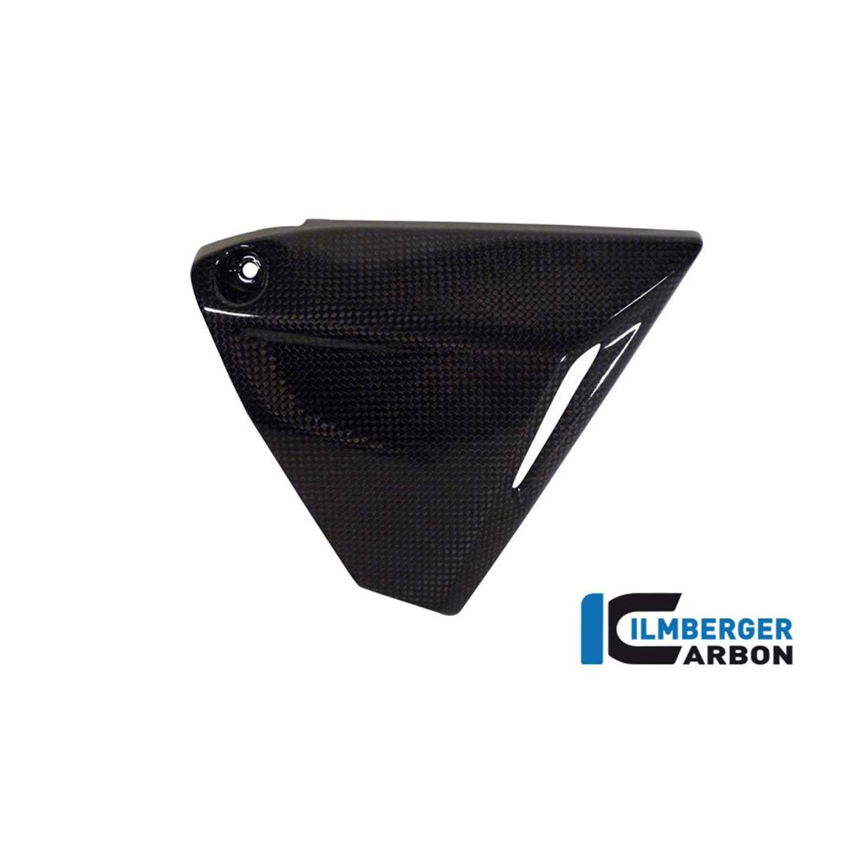 Die Rahmendreieckabdeckung rechts in Carbon ersetzt das originale Bauteil unter Verwendung der originalen Befestigungspunkte. Im Vordergrund stehen Gewichtsersparnis (in der Regel Einsparung von ca. 70% im Vergleich zum originalen Bauteil) und höhere Steifigkeit.  Das Carbonteil wurde nach den neuesten Richtlinien im Autoklaven komplett aus Prepreg (siehe FAQ) Material gefertigt und im nächsten Schritt, wie bei uns üblich, zum Schutz gegen Umwelteinflüße mit einer klaren Kunststoffbeschichtung überzogen.