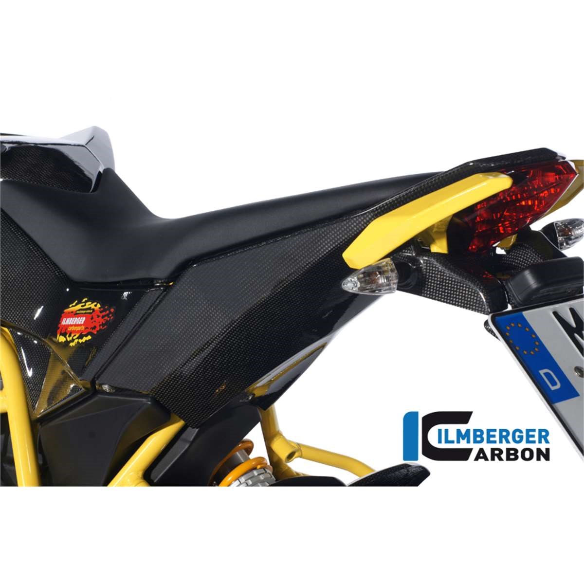 Die Rahmenheckabdeckung / untere Sitzbankverkleidung in Carbon für die Husqvarna Nuda 900 und 900 R ersetzt das originale Bauteil unter Verwendung der originalen Befestigungspunkte. Im Vordergrund stehen Gewichtsersparnis (in der Regel Einsparung von ca. 70% im Vergleich zum originalen Bauteil) und höhere Steifigkeit.  Das Carbonteil wurde nach den neuesten Richtlinien im Autoklaven komplett aus Prepreg (siehe FAQ) Material gefertigt und im nächsten Schritt, wie bei uns üblich, zum Schutz gegen Umwelteinflüße mit einer klaren Kunststoffbeschichtung überzogen.