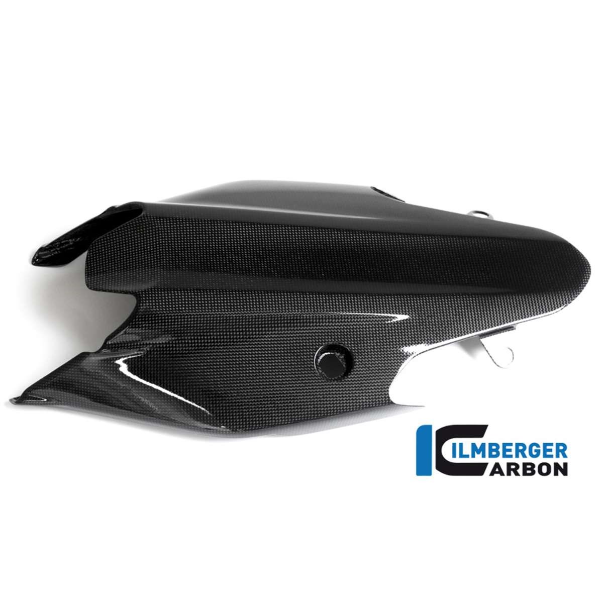 Die untere Rahmenheckabdeckung in Carbon für die Ducati Monster 1200 und Monster 1200 S ersetzt das originale Bauteil unter Verwendung der originalen Befestigungspunkte. Im Vordergrund stehen Gewichtsersparnis (in der Regel Einsparung von ca. 70% im Vergleich zum originalen Bauteil) und höhere Steifigkeit. Das Carbonteil wurde nach den neuesten Richtlinien im Autoklaven komplett aus Prepreg (siehe FAQ) Material gefertigt und im nächsten Schritt, wie bei uns üblich, zum Schutz gegen Umwelteinflüße mit einer klaren Kunststoffbeschichtung überzogen. Diese Kunststoffbeschichtung übertrifft den sonst üblichen Klarlacküberzug in der Schutzwirkung, Kratzfestigkeit und Beständigkeit enorm. Aber nicht nur technisch kann die Beschichtung punkten, sondern sie unterstreicht auch die dreidimensionale Wirkung der Carbonstruktur nochmals deutlich.