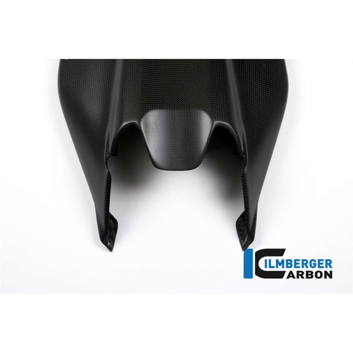 Die untere Rahmenheckabdeckung in Carbon für die Ducati Monster 1200 und Monster 1200 S ersetzt das originale Bauteil unter Verwendung der originalen Befestigungspunkte. Im Vordergrund stehen Gewichtsersparnis (in der Regel Einsparung von ca. 70% im Vergleich zum originalen Bauteil) und höhere Steifigkeit. Das Carbonteil wurde nach den neuesten Richtlinien im Autoklaven komplett aus Prepreg (siehe FAQ) Material gefertigt und im nächsten Schritt, wie bei uns üblich, zum Schutz gegen Umwelteinflüße mit einer klaren Kunststoffbeschichtung überzogen. Diese Kunststoffbeschichtung übertrifft den sonst üblichen Klarlacküberzug in der Schutzwirkung, Kratzfestigkeit und Beständigkeit enorm. Aber nicht nur technisch kann die Beschichtung punkten, sondern sie unterstreicht auch die dreidimensionale Wirkung der Carbonstruktur nochmals deutlich.