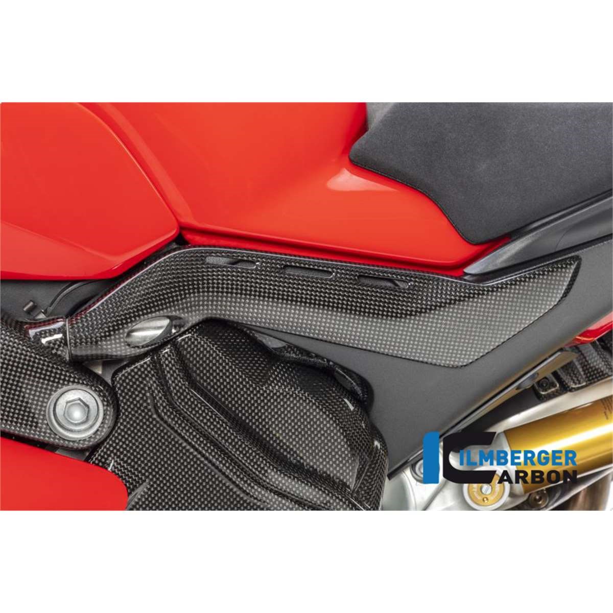 Die linke Abdeckung am Rahmenheck in Carbon mit glänzendem Finish für die Ducati Panigale V4 /V4 S ab Modell 2018 ersetzt das originale Bauteil unter Verwendung der originalen Befestigungspunkte.