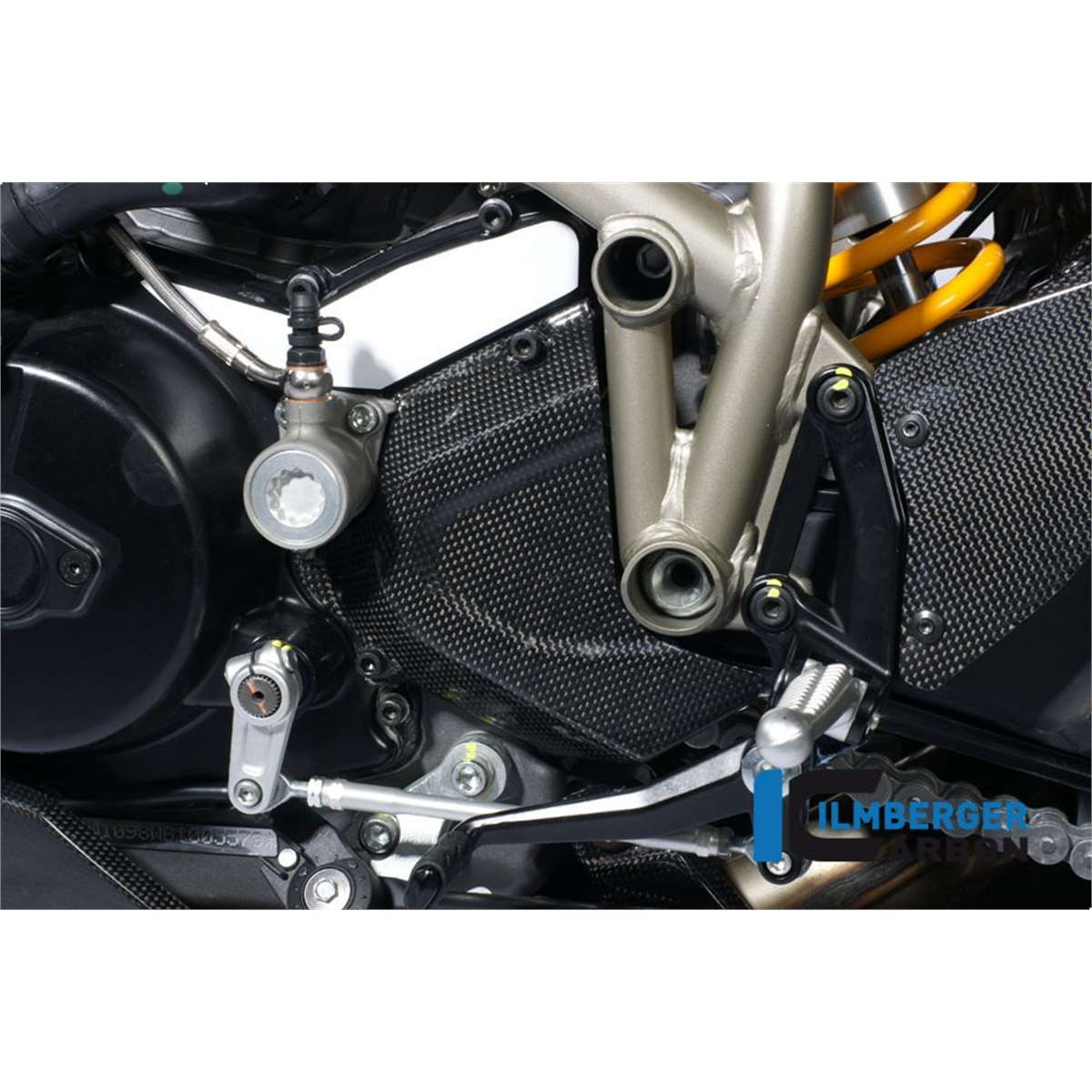 Die Ritzelabdeckung in Carbon für die Ducati Streetfighter und Monster 1100 ersetzt das originale Bauteil unter Verwendung der originalen Befestigungspunkte. Im Vordergrund stehen Gewichtsersparnis (in der Regel Einsparung von ca. 70% im Vergleich zum originalen Bauteil) und höhere Steifigkeit.  Das Carbonteil wurde nach den neuesten Richtlinien im Autoklaven komplett aus Prepreg (siehe FAQ) Material gefertigt und im nächsten Schritt, wie bei uns üblich, zum Schutz gegen Umwelteinflüße mit einer klaren Kunststoffbeschichtung überzogen.