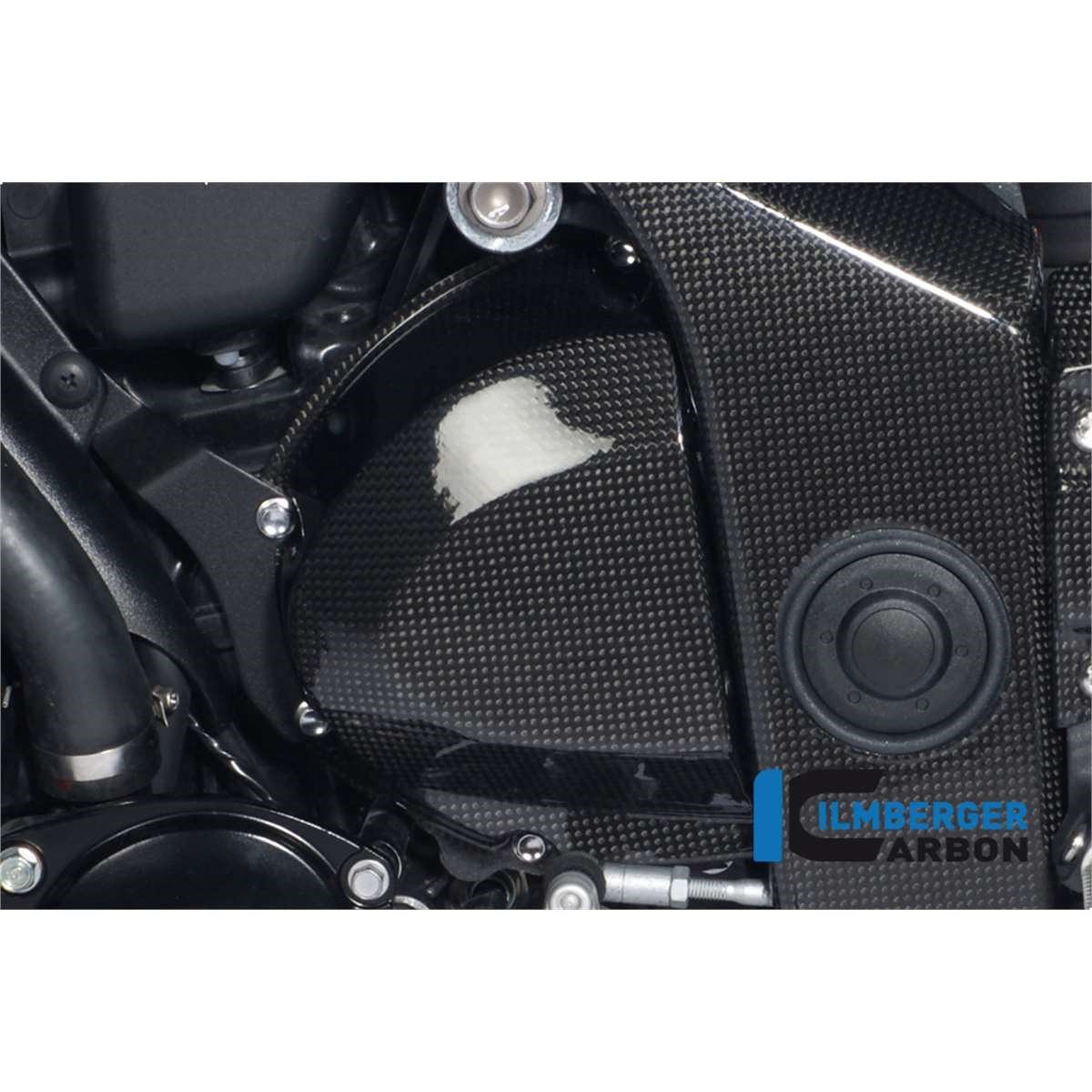 Die Ritzelabdeckung in Carbon für die Triumph Speed Triple ersetzt das originale Bauteil unter Verwendung der originalen Befestigungspunkte. Im Vordergrund stehen Gewichtsersparnis (in der Regel Einsparung von ca. 70% im Vergleich zum originalen Bauteil) und höhere Steifigkeit.  Das Carbonteil wurde nach den neuesten Richtlinien im Autoklaven komplett aus Prepreg (siehe FAQ) Material gefertigt und im nächsten Schritt, wie bei uns üblich, zum Schutz gegen Umwelteinflüße mit einer klaren Kunststoffbeschichtung überzogen.