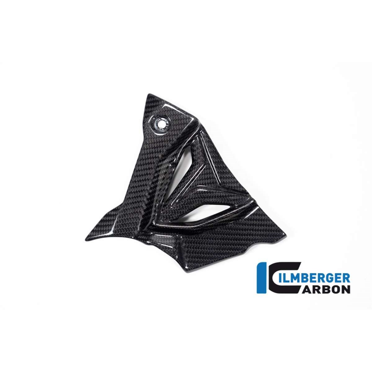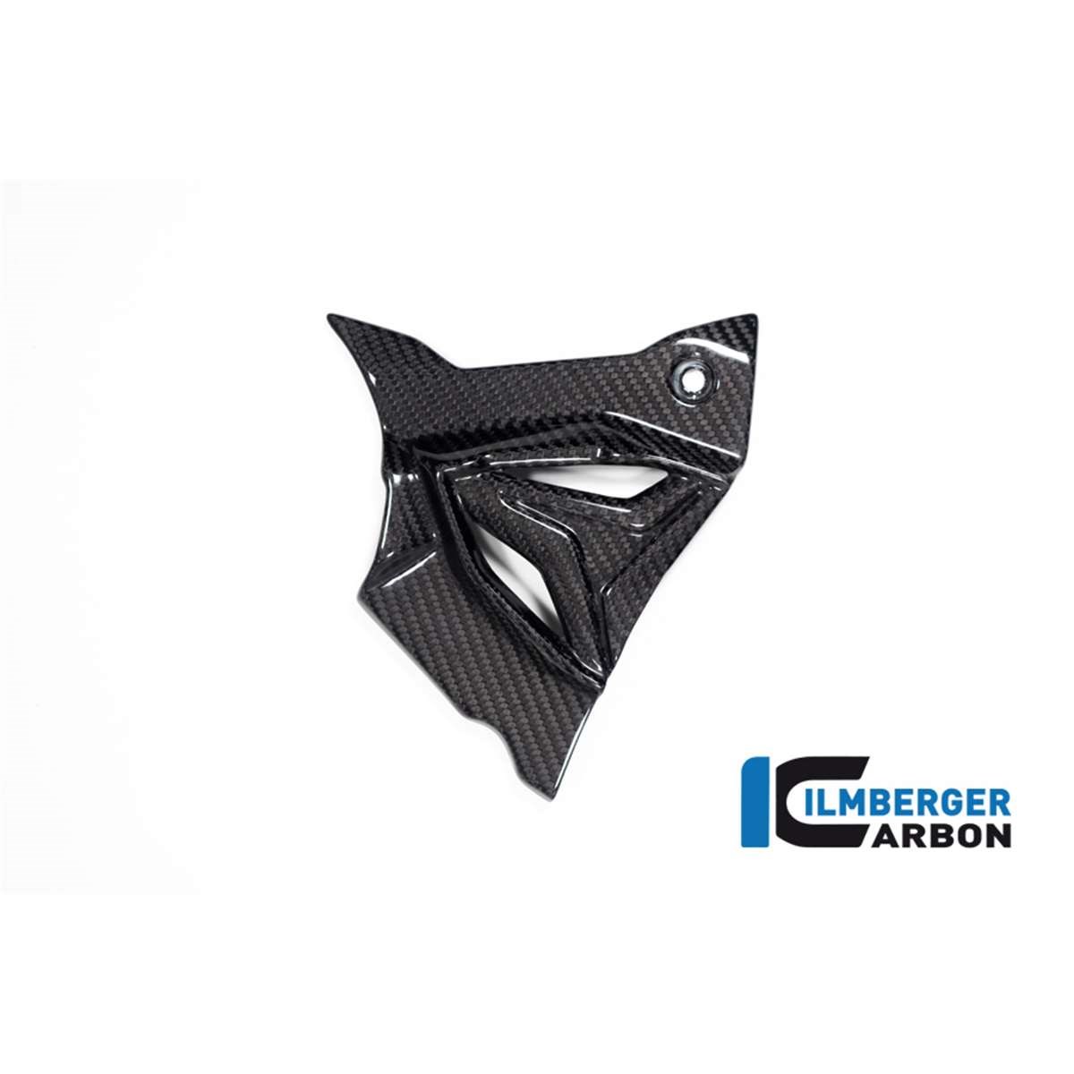 Die Ritzelabdeckung ist eines der am meist unterschätzten Bauteile am ganzen Motorrad. Zentral am Motorrad verbaut umgibt sie das Kettenritzel und leistet mehr als es auf den ersten Blick scheinen mag. Es schützt den Motor und viele weitere Komponenten vor herumfliegenden Ketenfett bei der Fahrt. Dieses ist als Schmutz besodners hartnäckig und lässt sich von der weichen Oberfläches des Originalteils nur schwer wieder entfernen. Eine harte Oberfläche, wie sie bei hochewrtigem Carbon vorkommt eignet sich hier besser.