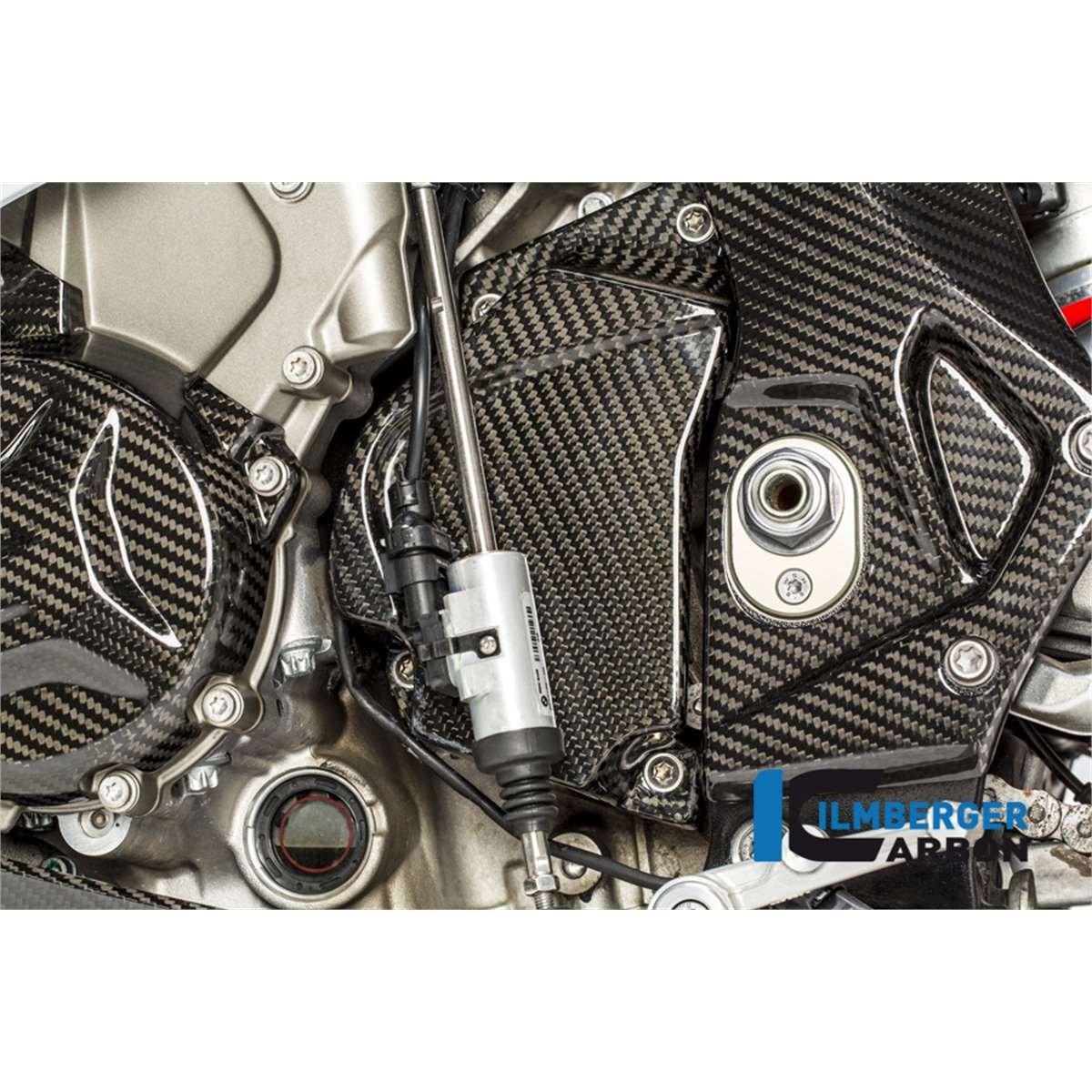 Die Ritzelabdeckung in Carbon für die BMW S 1000 RR ab 2015 ersetzt das originale Bauteil unter Verwendung der originalen Befestigungspunkte. Die Ritzelabdeckung ist für Modelle mit ABS geeignet. Im Vordergrund stehen Gewichtsersparnis (in der Regel Einsparung von ca. 70% im Vergleich zum originalen Bauteil) und höhere Steifigkeit. Das Carbonteil wurde nach den neuesten Richtlinien im Autoklaven komplett aus Prepreg (siehe FAQ) Material gefertigt und im nächsten Schritt, wie bei uns üblich, zum Schutz gegen Umwelteinflüße mit einer klaren Kunststoffbeschichtung überzogen. Diese Kunststoffbeschichtung übertrifft den sonst üblichen Klarlacküberzug in der Schutzwirkung, Kratzfestigkeit und Beständigkeit enorm. Aber nicht nur technisch kann die Beschichtung punkten, sondern sie unterstreicht auch die dreidimensionale Wirkung der Carbonstruktur nochmals deutlich.