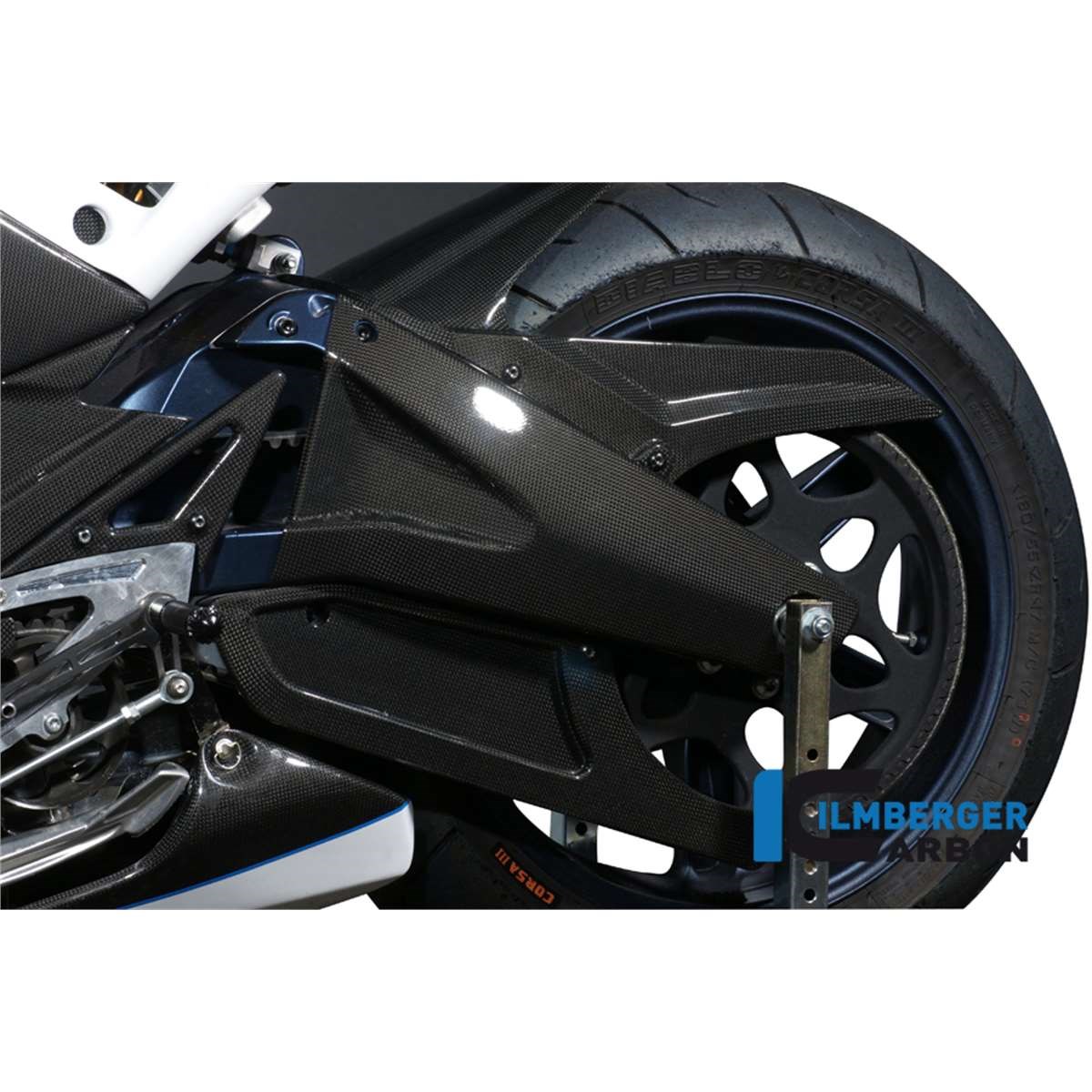 Die Schwingenabdeckung in Carbon für die Buell 1125 R / CR ergänzt das Fahrzeug und sorgt für einen zusätzlichen Schutz des Fahrzeugs vor Beschädigungen. Die Montage der Teile erfolgt über mitgelieferte Klebestreifen und/oder die Verwendung originaler Aufnahmepunkte. Das Carbonteil wurde nach den neuesten Richtlinien im Autoklaven komplett aus Prepreg (siehe FAQ) Material gefertigt und im nächsten Schritt, wie bei uns üblich, zum Schutz gegen Umwelteinflüße mit einer klaren Kunststoffbeschichtung überzogen. Diese Kunststoffbeschichtung übertrifft den sonst üblichen Klarlacküberzug in der Schutzwirkung, Kratzfestigkeit und Beständigkeit enorm. Aber nicht nur technisch kann die Beschichtung punkten, sondern sie unterstreicht auch die dreidimensionale Wirkung der Carbonstruktur nochmals deutlich.