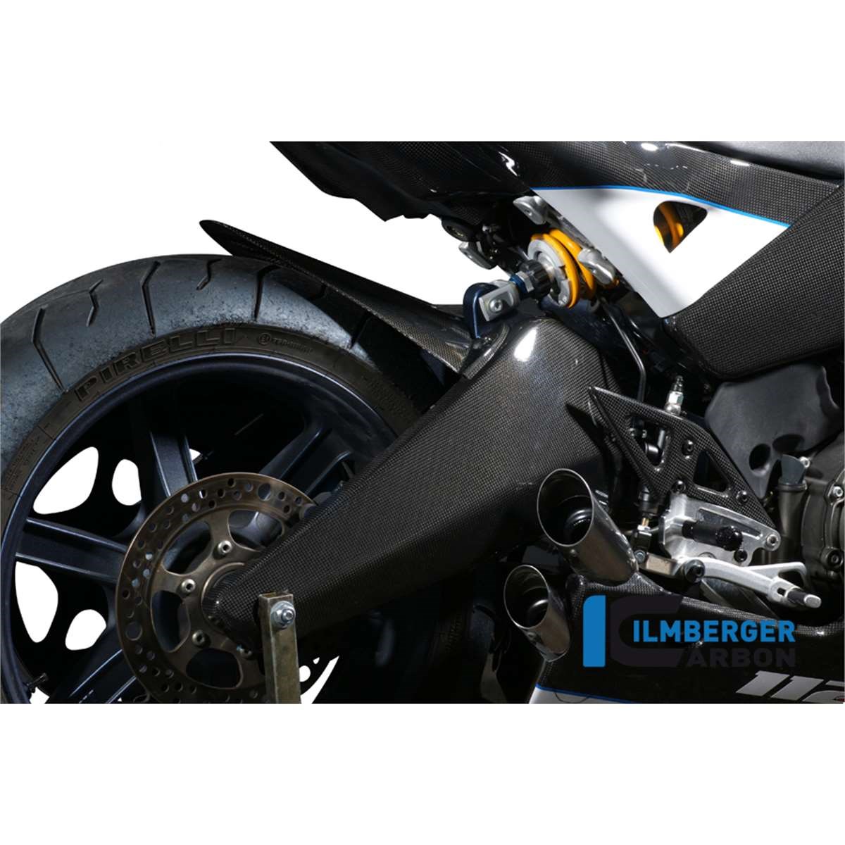 Die Schwingenabdeckung in Carbon für die Buell 1125 R/CR ergänzt das Fahrzeug und sorgt für einen zusätzlichen Schutz des Fahrzeugs vor Beschädigungen. Die Montage der Teile erfolgt über mitgelieferte Klebestreifen und/oder die Verwendung originaler Aufnahmepunkte. Das Carbonteil wurde nach den neuesten Richtlinien im Autoklaven komplett aus Prepreg (siehe FAQ) Material gefertigt und im nächsten Schritt, wie bei uns üblich, zum Schutz gegen Umwelteinflüße mit einer klaren Kunststoffbeschichtung überzogen. Diese Kunststoffbeschichtung übertrifft den sonst üblichen Klarlacküberzug in der Schutzwirkung, Kratzfestigkeit und Beständigkeit enorm. Aber nicht nur technisch kann die Beschichtung punkten, sondern sie unterstreicht auch die dreidimensionale Wirkung der Carbonstruktur nochmals deutlich.