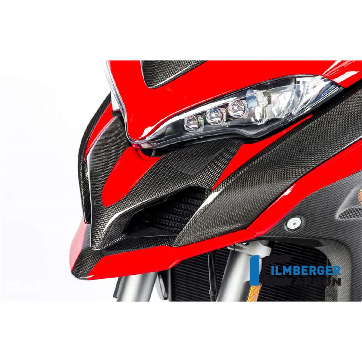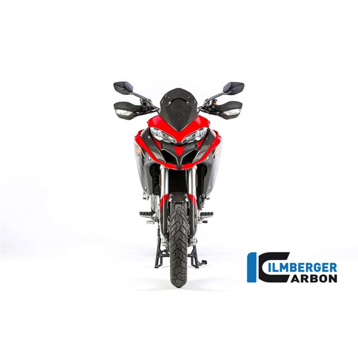 Gerade an der aggressiven Front der Multistrada Serie hebt das Carbonteil den sportlichen Charakter des Motorrades besonders hervor. Der Schnabel ist einteilig ausgeführt und auch der Abschluß von unten erfolgt mittels eines speziellen, im Lieferumfang enthaltenen, weiteren Carbonteiles.