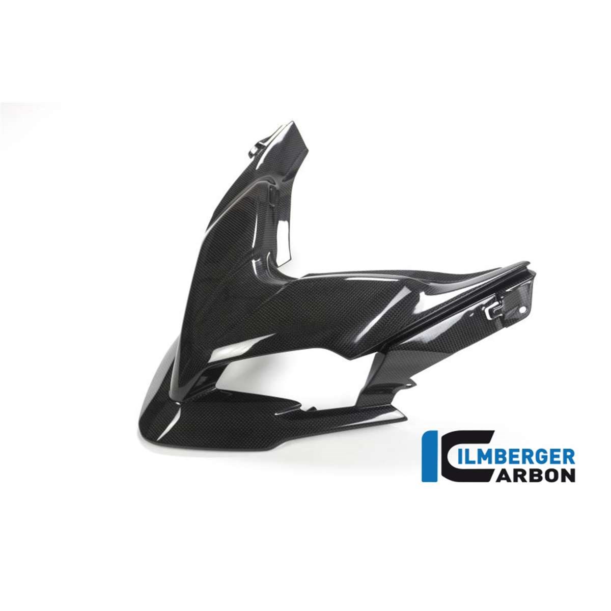 Alle Aufnahmen für die Montage des Scheinwerfers sind an dem Ilmberger-Schnabel vorhanden. Es wird nur serienmäßiges Montagematerial verwendet und, wie von Ilmberger gewohnt, nur serienmäßige Halte- und Schraubpunkte genutzt. Die glänzende Ausführung steht im Kontrast zu den, in mattem Finish ausgelieferten, originalen Ducati Performance Carbonteilen.