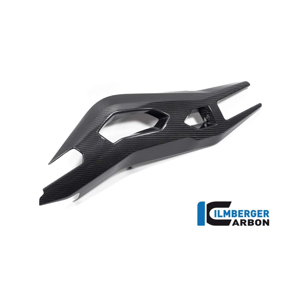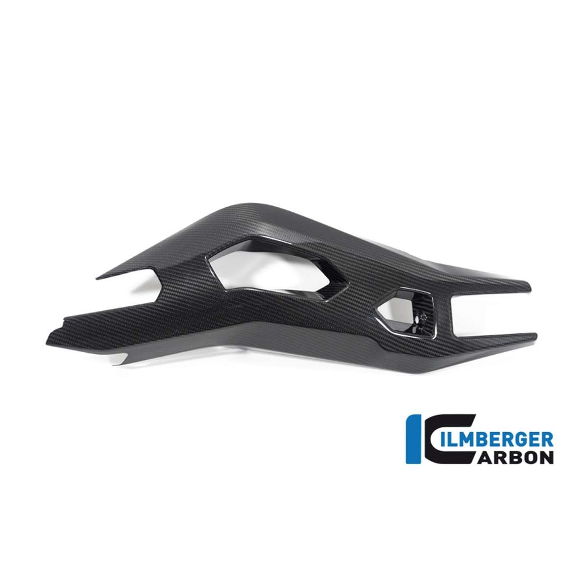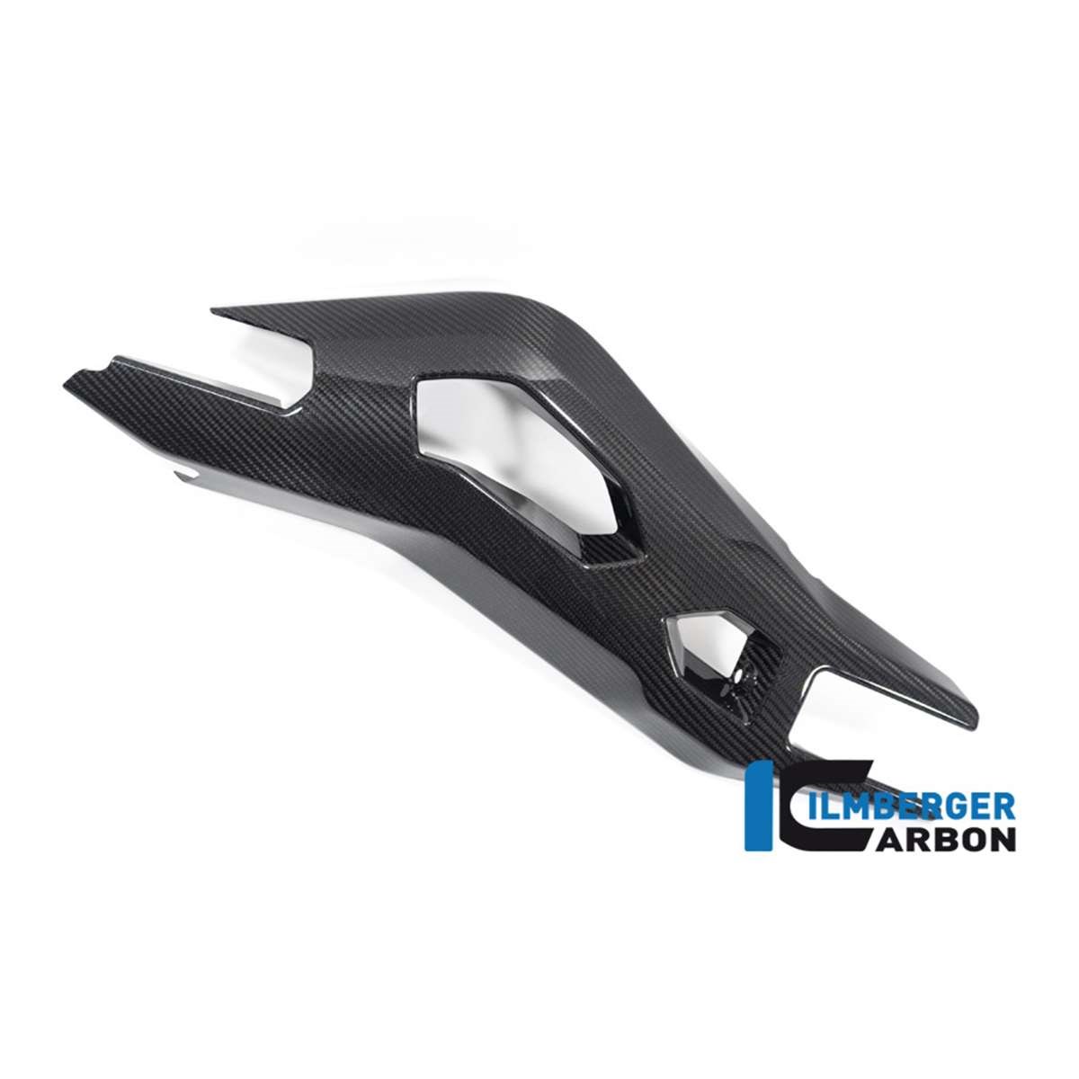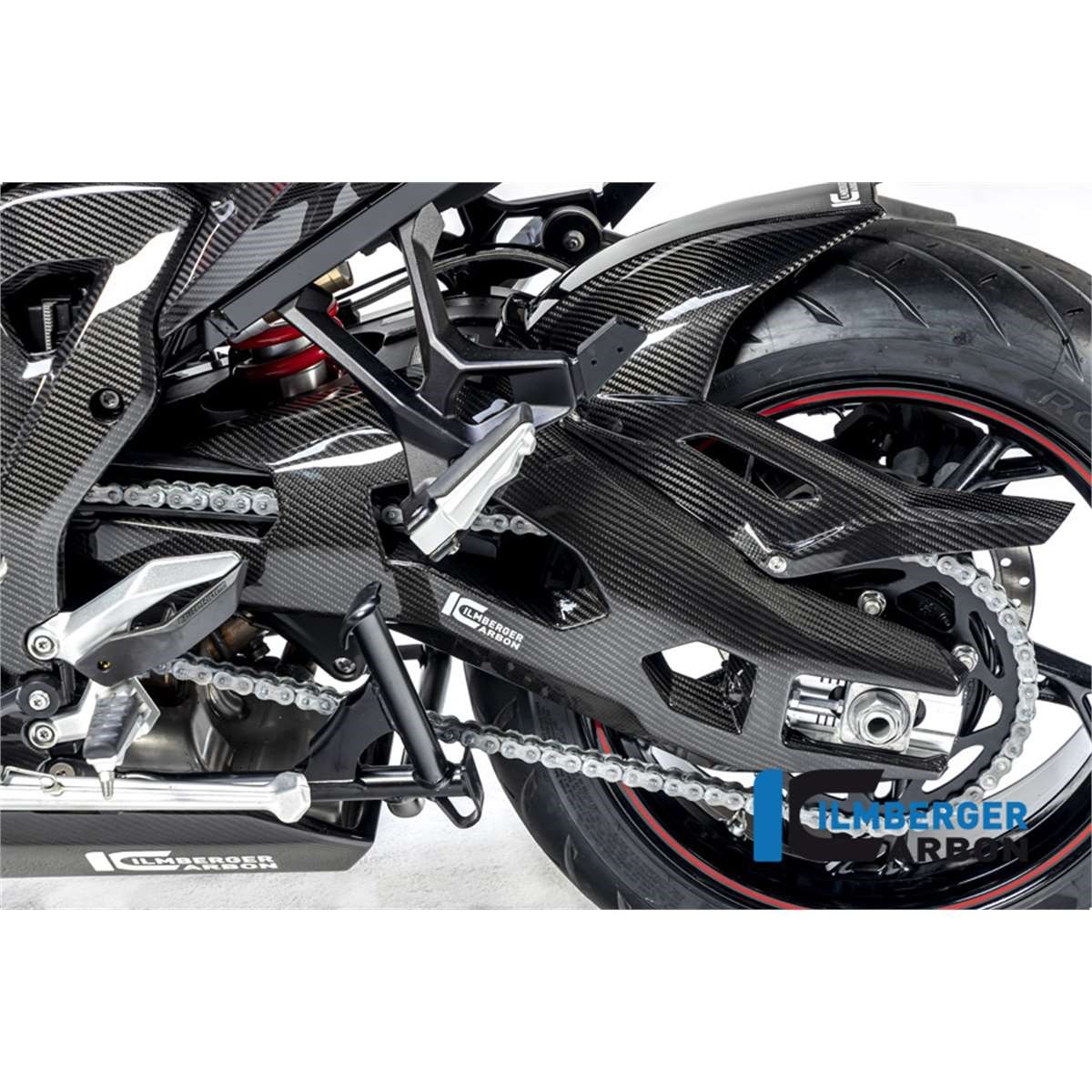 Ohne zusätzliche Schrauben schützt die Schwingenabdeckung aus Carbon alles darunterliegende. Der Stufenlose Kettenspanner bleibt frei und eine optimale Wartung des Motorrads bleibt gewährleistet. Optisch wirkt Sie dank des Tiefeneffekts von Carbon deutlich intensiver als die raue Gussoberfläche der Schwinge.