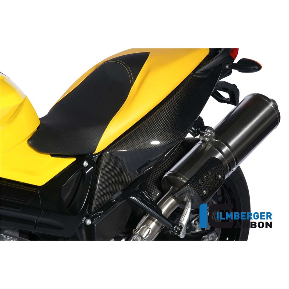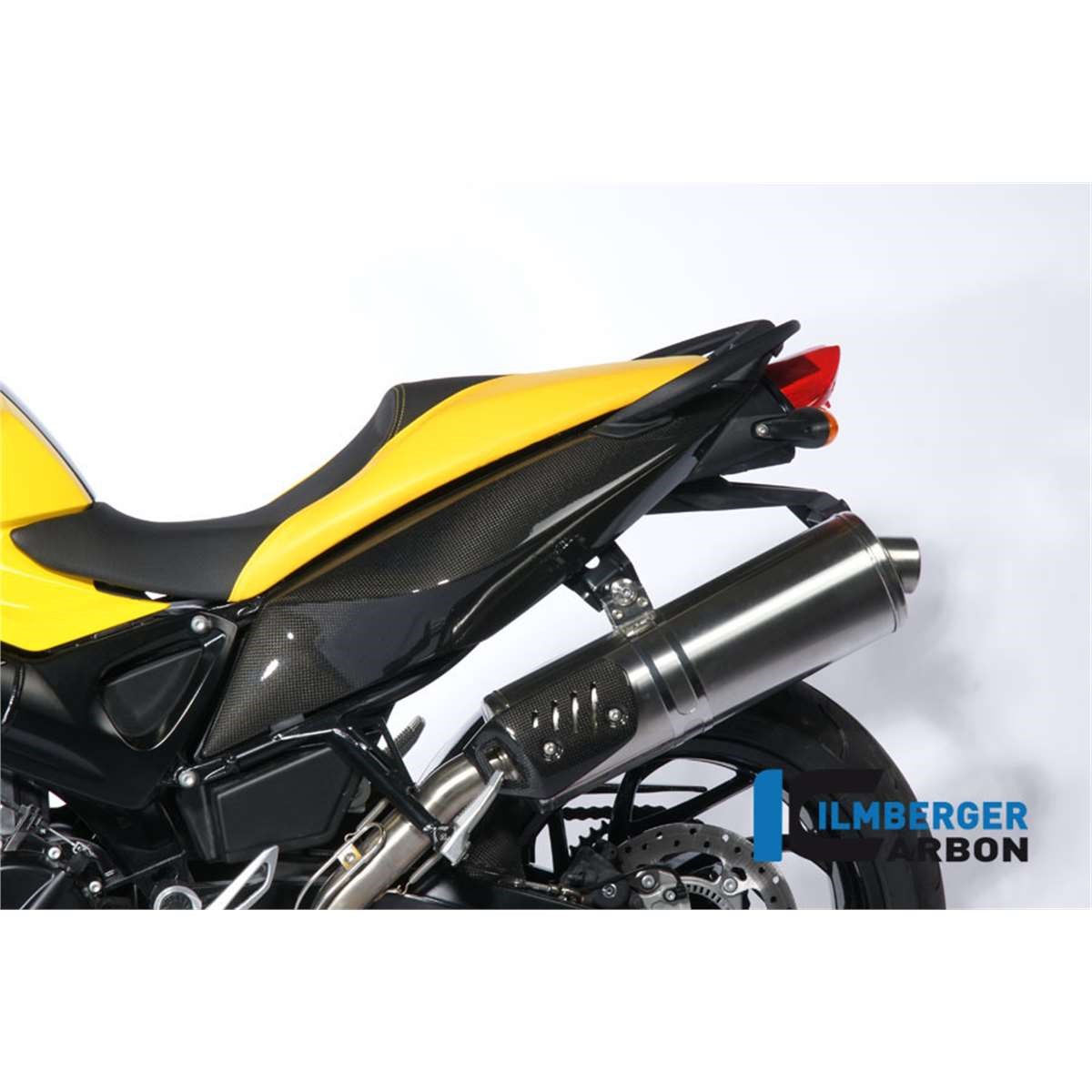 Die Seitendeckel unterm Sitz für die BMW F 800 R (2009-2014) / S (2006-aktuell) / ST (2006-aktuell) / GT (2012-aktuell) in Carbon sind so geformt, dass Sie zusätzlich möglichst viel des im Original in schwarzem Plastik gehaltenen Tanks abdecken.