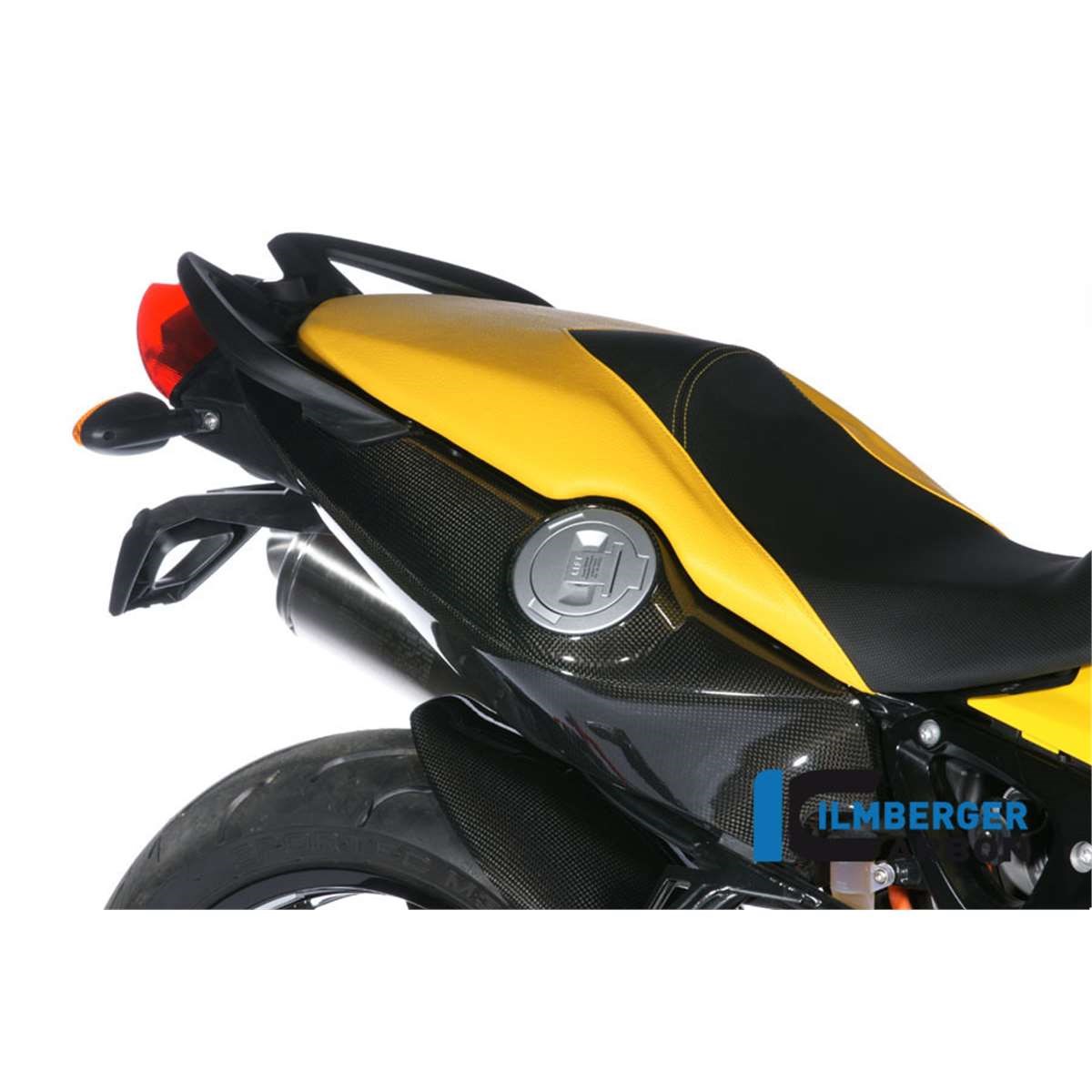 Die Seitendeckel unterm Sitz für die BMW F 800 R (2012-2015) / S (2006-aktuell) / ST (2006-aktuell) / GT (2012-aktuell) in Carbon sind so geformt, dass Sie zusätzlich möglichst viel des im Original in schwarzem Plastik gehaltenen Tanks abdecken.