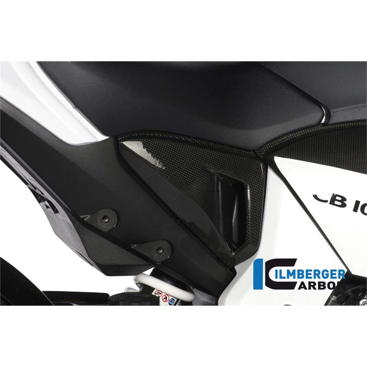 Der Seitendeckel unterm Sitz in Carbon für die Honda CB 1000 R  ersetzt das originale Bauteil unter Verwendung der originalen Befestigungspunkte. Im Vordergrund stehen Gewichtsersparnis (in der Regel Einsparung von ca. 70% im Vergleich zum originalen Bauteil) und höhere Steifigkeit.  Das Carbonteil wurde nach den neuesten Richtlinien im Autoklaven komplett aus Prepreg (siehe FAQ) Material gefertigt und im nächsten Schritt, wie bei uns üblich, zum Schutz gegen Umwelteinflüße mit einer klaren Kunststoffbeschichtung überzogen.
