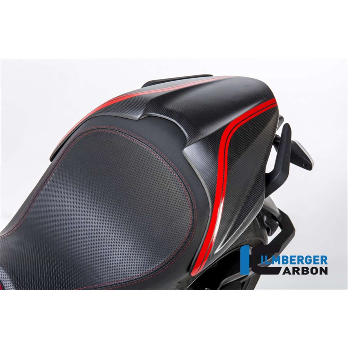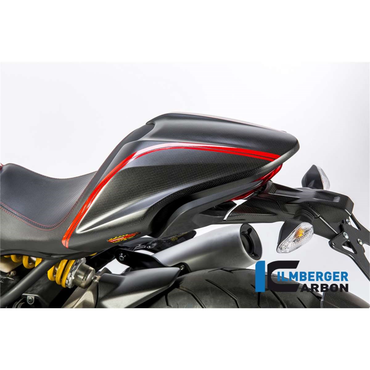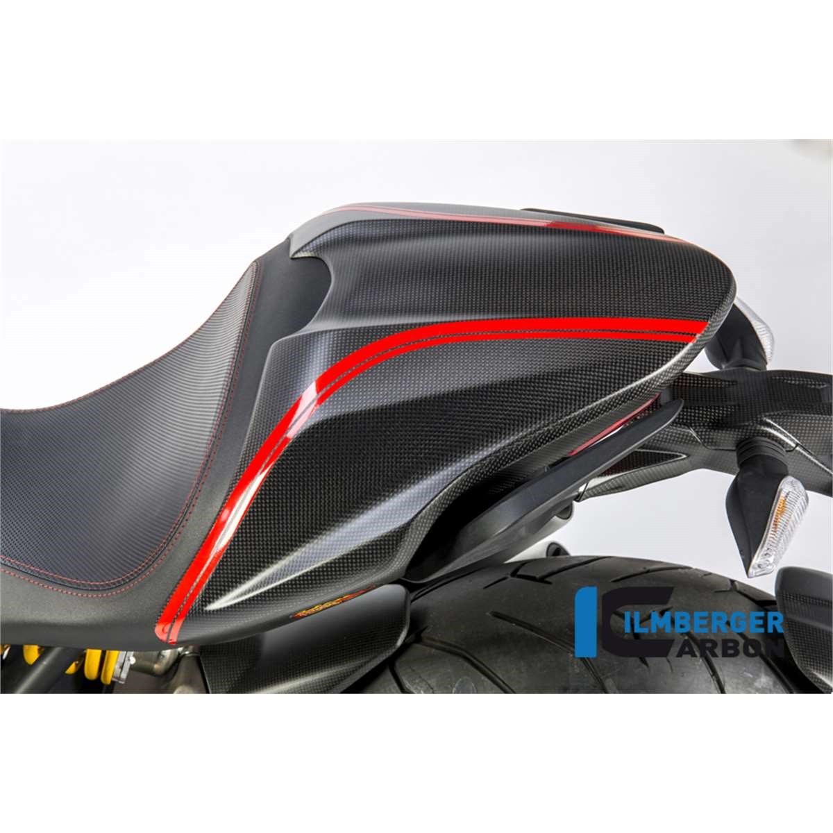 Die Sozius Sitzabdeckung in Carbon für die Ducati Monster 1200 und Monster 1200 S ersetzt das originale Bauteil unter Verwendung der originalen Befestigungspunkte. Im Vordergrund stehen Gewichtsersparnis (in der Regel Einsparung von ca. 70% im Vergleich zum originalen Bauteil) und höhere Steifigkeit. Das Carbonteil wurde nach den neuesten Richtlinien im Autoklaven komplett aus Prepreg (siehe FAQ) Material gefertigt und im nächsten Schritt, wie bei uns üblich, zum Schutz gegen Umwelteinflüße mit einer klaren Kunststoffbeschichtung überzogen. Diese Kunststoffbeschichtung übertrifft den sonst üblichen Klarlacküberzug in der Schutzwirkung, Kratzfestigkeit und Beständigkeit enorm. Aber nicht nur technisch kann die Beschichtung punkten, sondern sie unterstreicht auch die dreidimensionale Wirkung der Carbonstruktur nochmals deutlich.