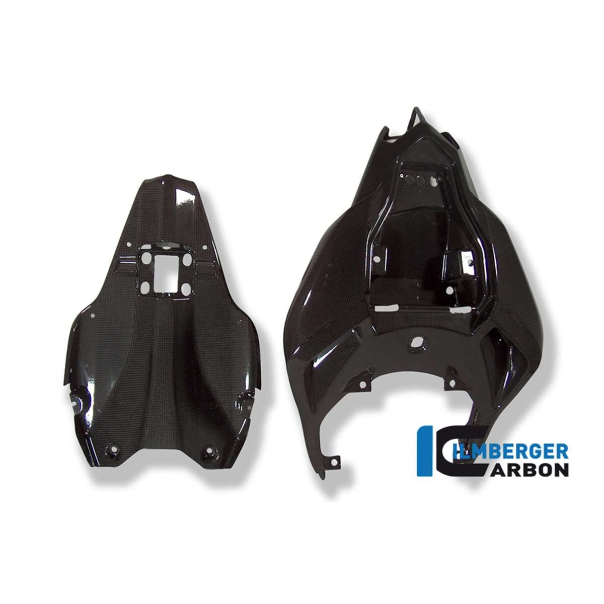 Die 2 Mann Sitzbank in Carbon inclusive unterer Sitzbankverkleidung für die Ducati Modelle 848/1098/1198 ersetzt das originale Bauteil unter Verwendung der originalen Befestigungspunkte. Im Vordergrund stehen Gewichtsersparnis (in der Regel Einsparung von ca. 70% im Vergleich zum originalen Bauteil) und höhere Steifigkeit.  Das Carbonteil wurde nach den neuesten Richtlinien im Autoklaven komplett aus Prepreg (siehe FAQ) Material gefertigt und im nächsten Schritt, wie bei uns üblich, zum Schutz gegen Umwelteinflüße mit einer klaren Kunststoffbeschichtung überzogen.