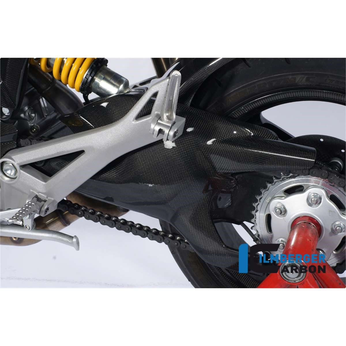 Die Schwingenabdeckung in Carbon für die Dcuati Monster 1100 ergänzt das Fahrzeug und sorgt für einen zusätzlichen Schutz des Fahrzeugs vor Beschädigungen. Die Montage der Teile erfolgt über mitgelieferte Klebestreifen und/oder die Verwendung originaler Aufnahmepunkte. Das Carbonteil wurde nach den neuesten Richtlinien im Autoklaven komplett aus Prepreg (siehe FAQ) Material gefertigt und im nächsten Schritt, wie bei uns üblich, zum Schutz gegen Umwelteinflüße mit einer klaren Kunststoffbeschichtung überzogen. Diese Kunststoffbeschichtung übertrifft den sonst üblichen Klarlacküberzug in der Schutzwirkung, Kratzfestigkeit und Beständigkeit enorm. Aber nicht nur technisch kann die Beschichtung punkten, sondern sie unterstreicht auch die dreidimensionale Wirkung der Carbonstruktur nochmals deutlich.