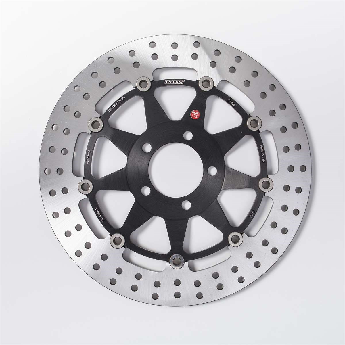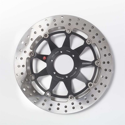 Bremsscheibe vollschwimmend mit gelochtem Stahlaussenring, Innenring aus Aluminium.