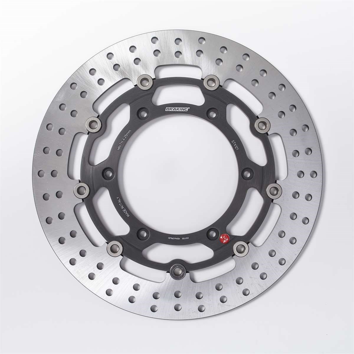 Bremsscheibe vollschwimmend mit gelochtem Stahlaussenring, Innenring aus Aluminium.