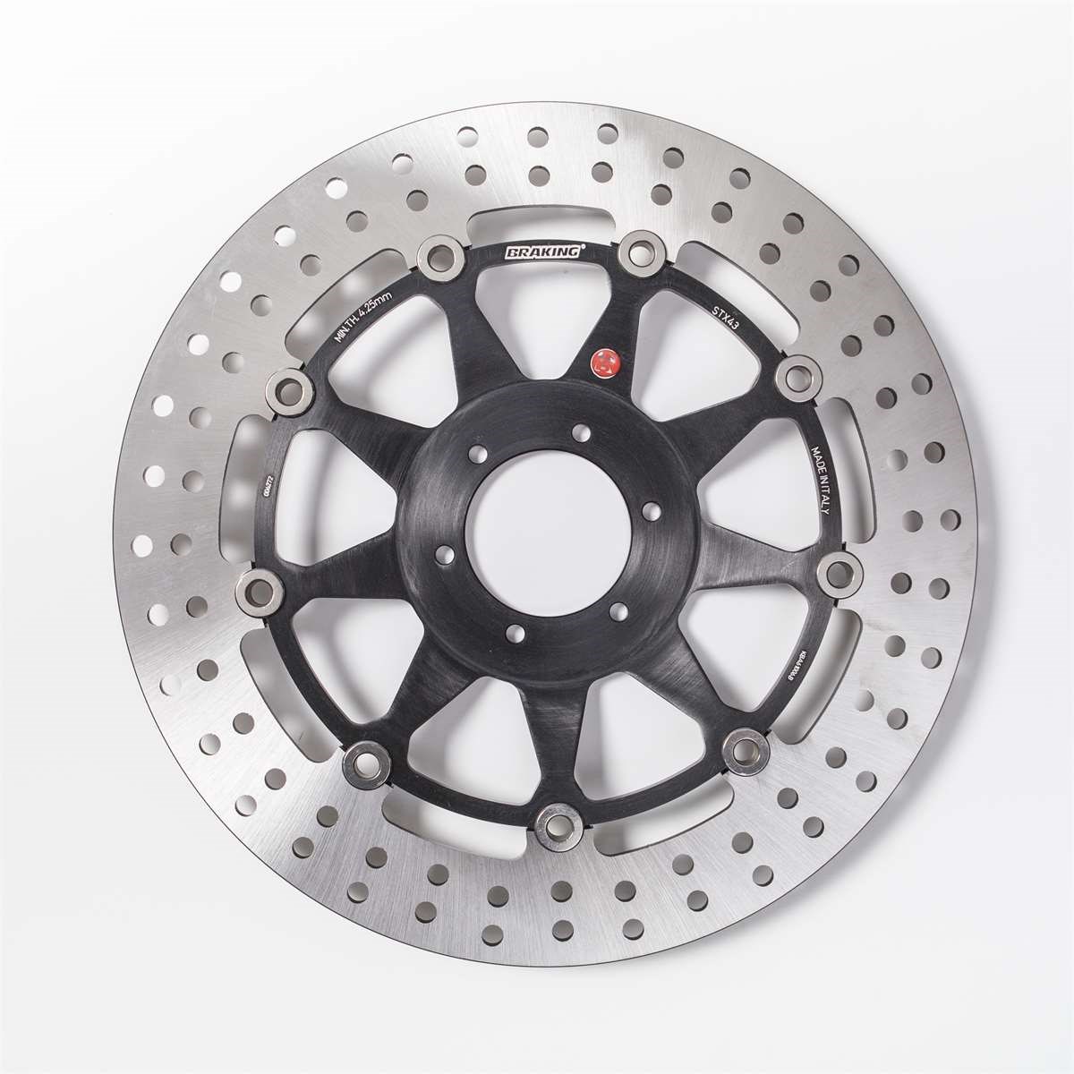 Bremsscheibe vollschwimmend mit gelochtem Stahlaussenring, Innenring aus Aluminium.