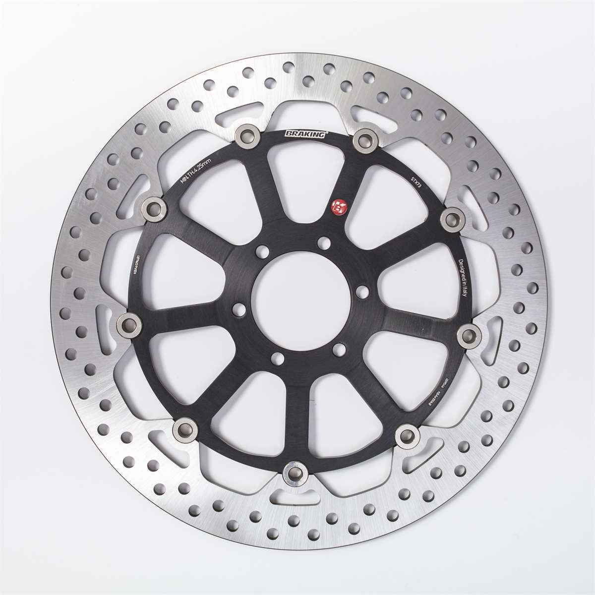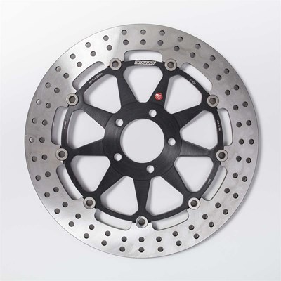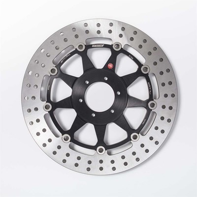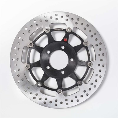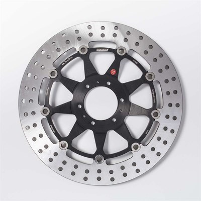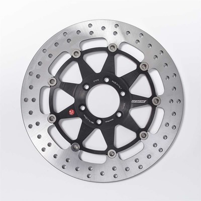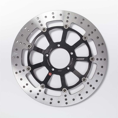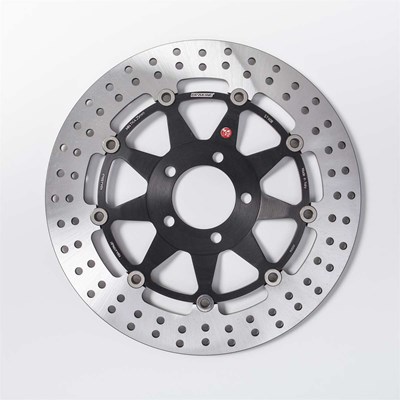 Bremsscheibe vollschwimmend mit gelochtem Stahlaussenring, Innenring aus Aluminium.
