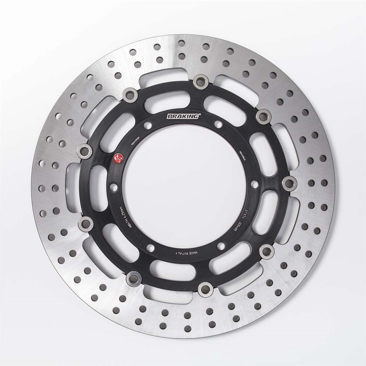 Bremsscheibe vollschwimmend mit gelochtem Stahlaussenring, Innenring aus Aluminium.