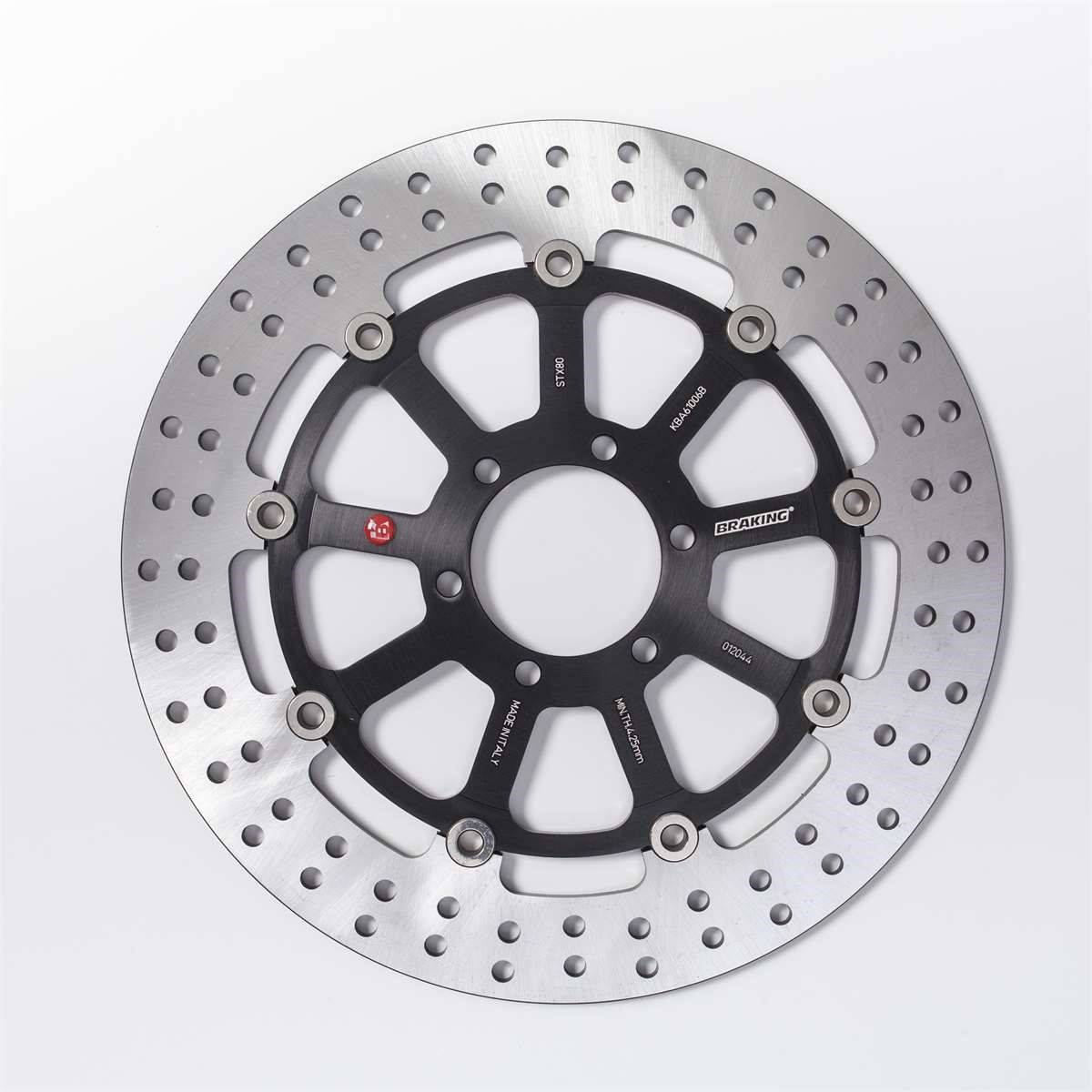 Bremsscheibe vollschwimmend mit gelochtem Stahlaussenring, Innenring aus Aluminium.