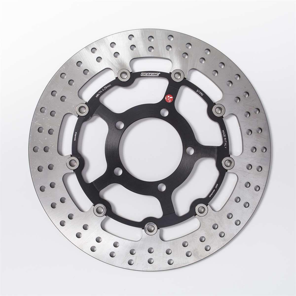 Bremsscheibe vollschwimmend mit gelochtem Stahlaussenring, Innenring aus Aluminium.
