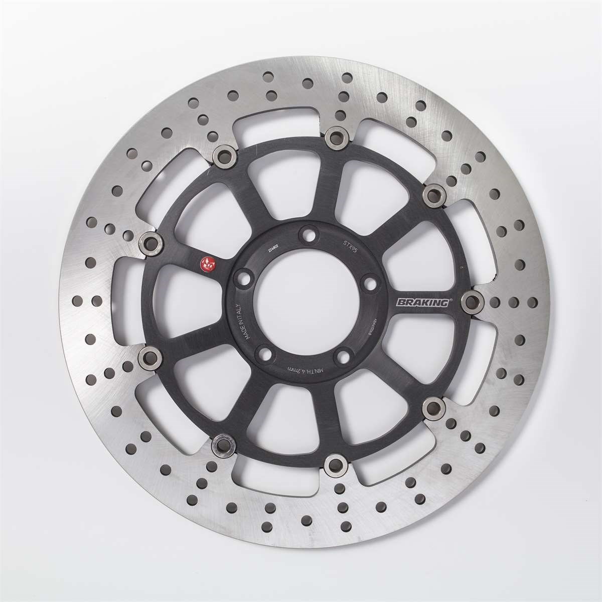 Bremsscheibe vollschwimmend mit gelochtem Stahlaussenring, Innenring aus Aluminium.