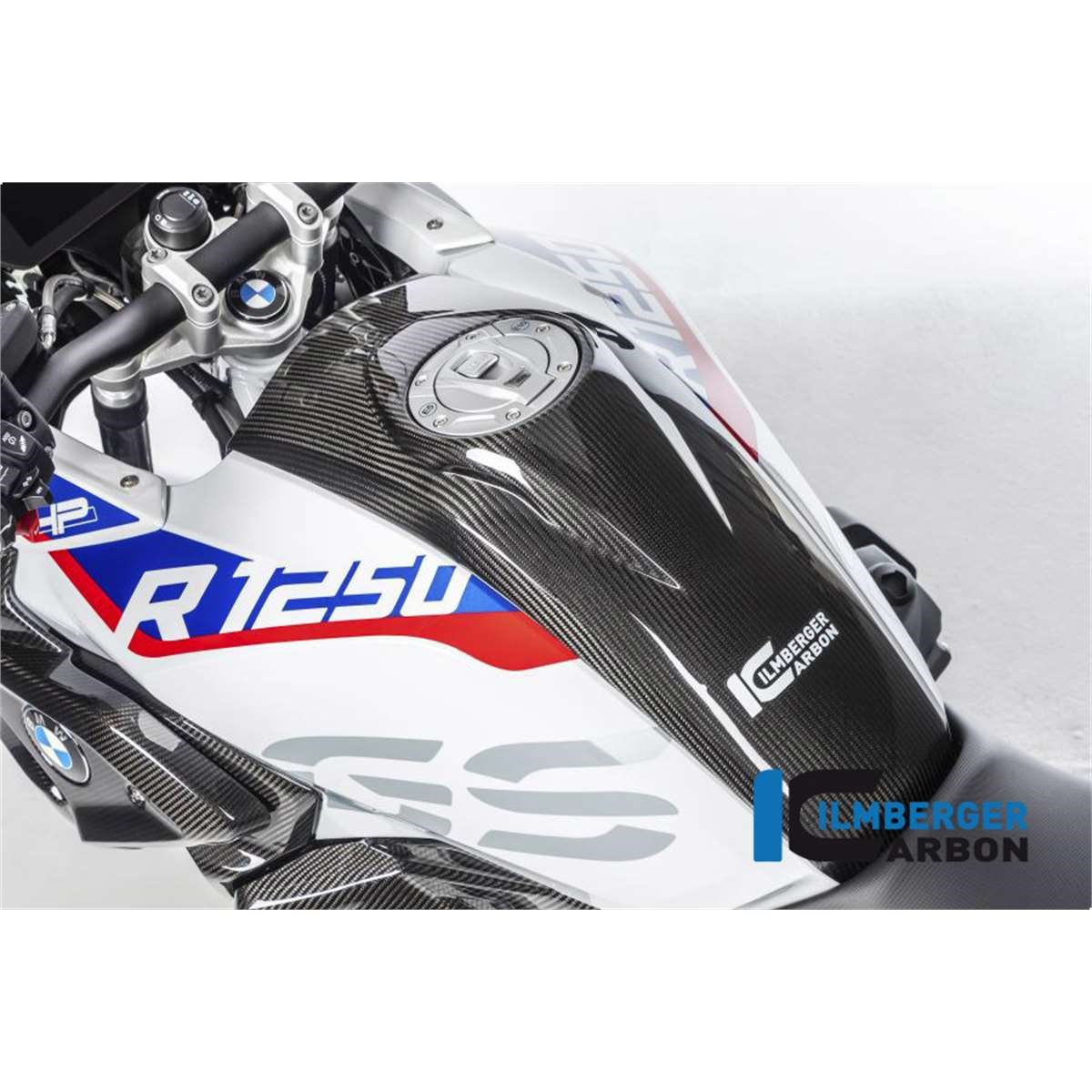 Die obere Tankabdeckung für die BMW R 1250 GS ab Baujahr 2019 ersetzt das originale Bauteil unter Verwendung der originalen Befestigungspunkte. Im Vordergrund stehen Gewichtsersparnis (in der Regel Einsparung von ca. 70% im Vergleich zum originalen Bauteil) und höhere Steifigkeit.
