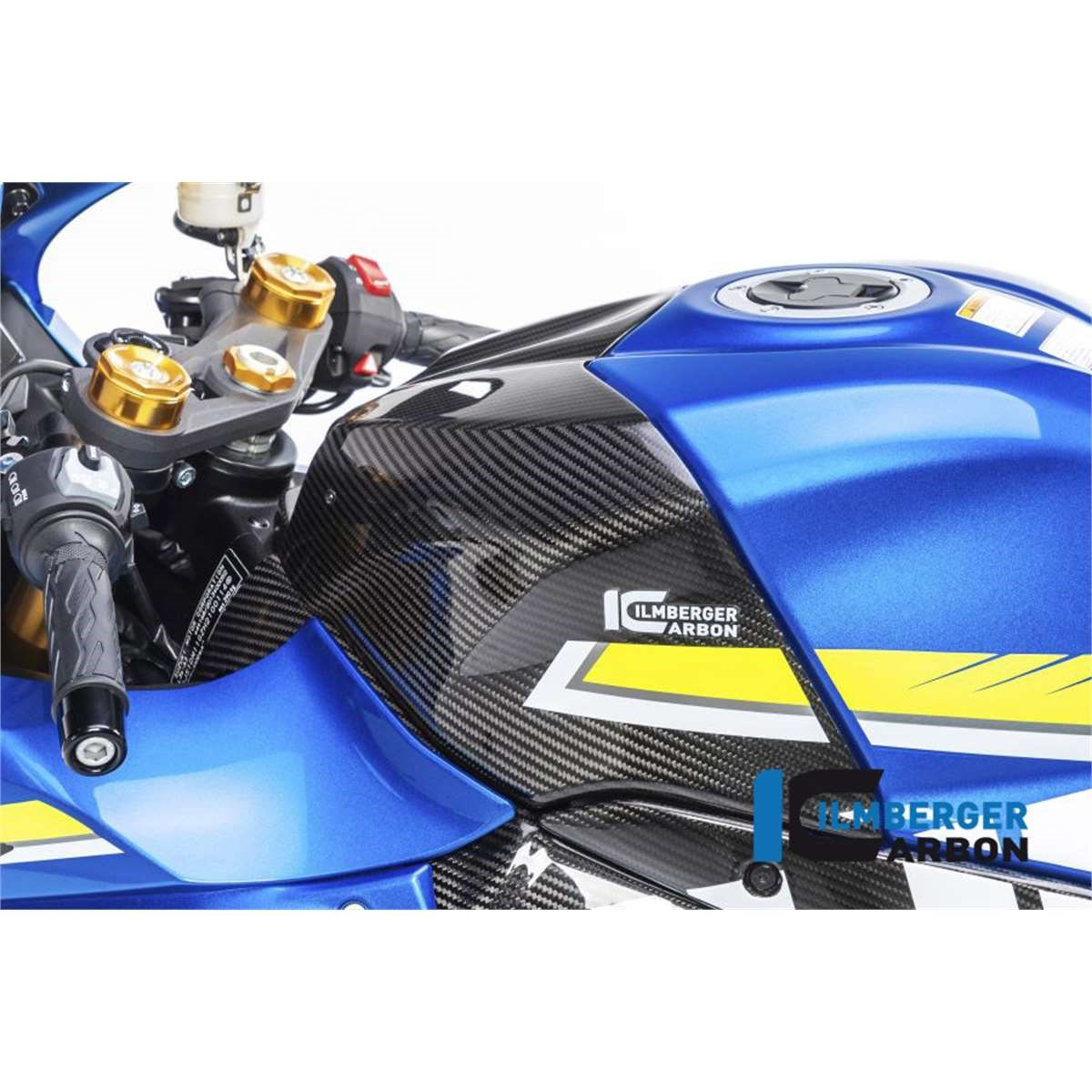 Die obere Tankabdeckung in Carbon für die Suzuki GSX R 1000 ab 2017 ersetzt das originale Bauteil unter Verwendung der originalen Befestigungspunkte.