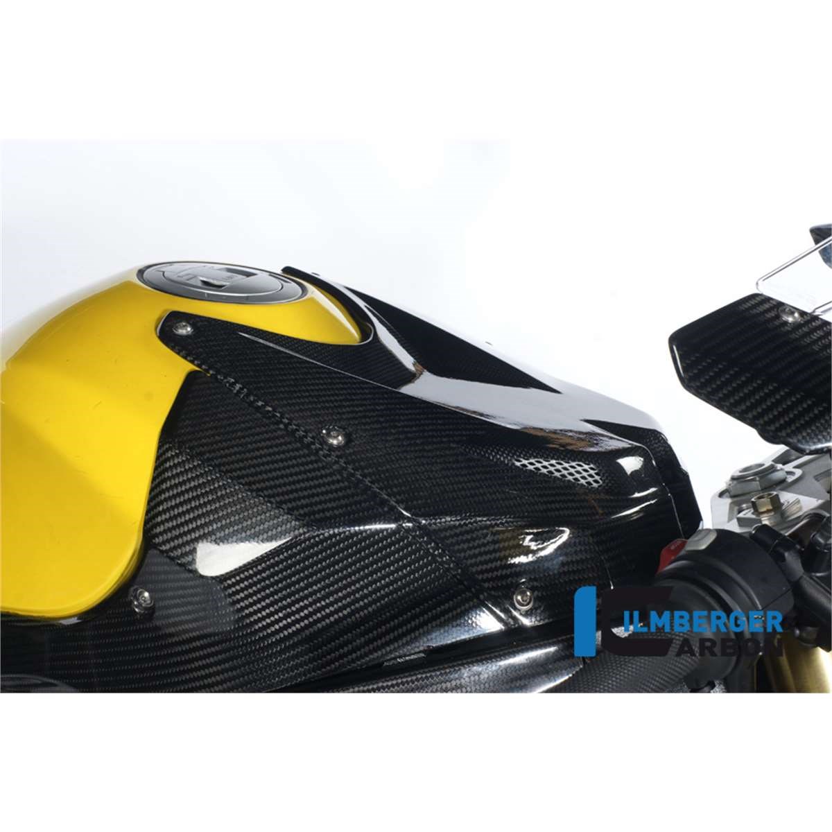 Die obere Tankabdeckung in Carbon für die BMW S 1000 RR Stocksport/Racing (2010-2014) ersetzt das originale Bauteil unter Verwendung der originalen Befestigungspunkte. Im Vordergrund stehen Gewichtsersparnis (in der Regel Einsparung von ca. 70% im Vergleich zum originalen Bauteil) und höhere Steifigkeit.  Das Carbonteil wurde nach den neuesten Richtlinien im Autoklaven komplett aus Prepreg (siehe FAQ) Material gefertigt und im nächsten Schritt, wie bei uns üblich, zum Schutz gegen Umwelteinflüße mit einer klaren Kunststoffbeschichtung überzogen.