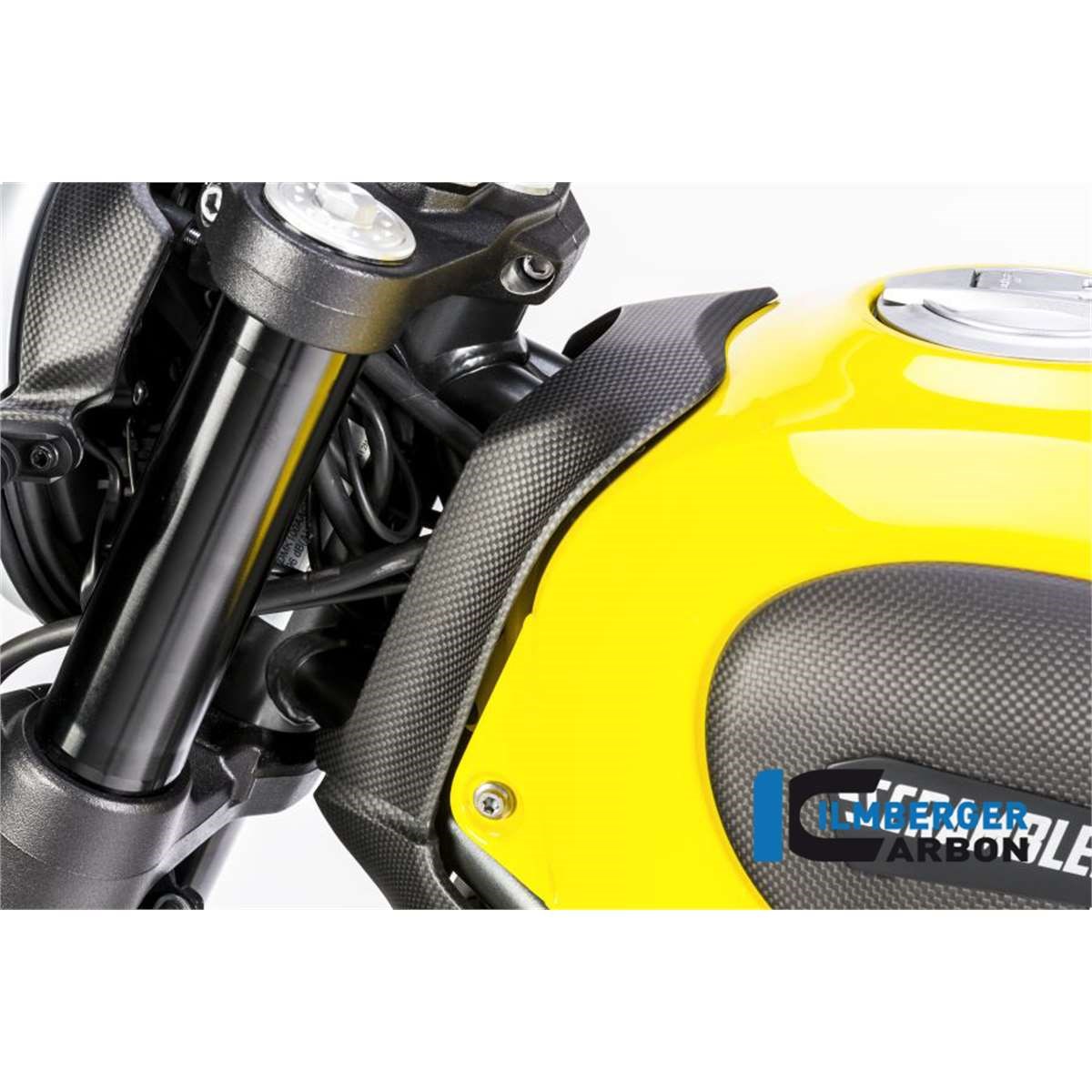 Die Obere Tankabdeckung in Carbon und matter Ausführung für die Ducati Scrambler ab 2016 wird an vorhandenen Haltepunkten am Fahrzeug aufgeschraubt.