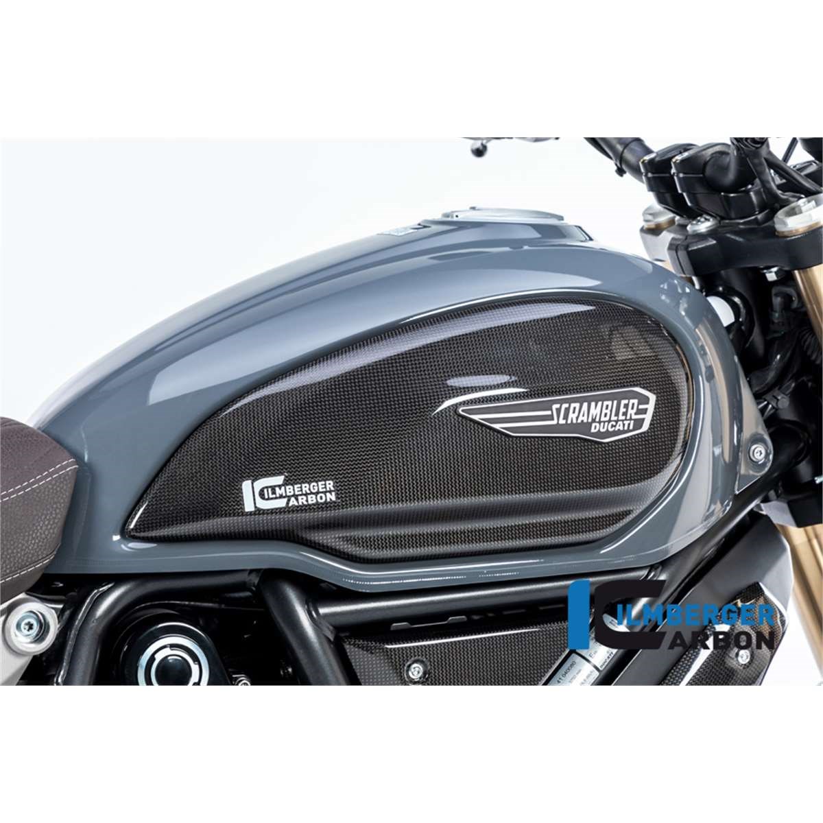 Die rechte Tankabdeckung in Carbon und glänzender Ausführung für die Ducati Scrambler 1100 ab 2017 wird an vorhandenen Haltepunkten am Fahrzeug aufgeschraubt.
