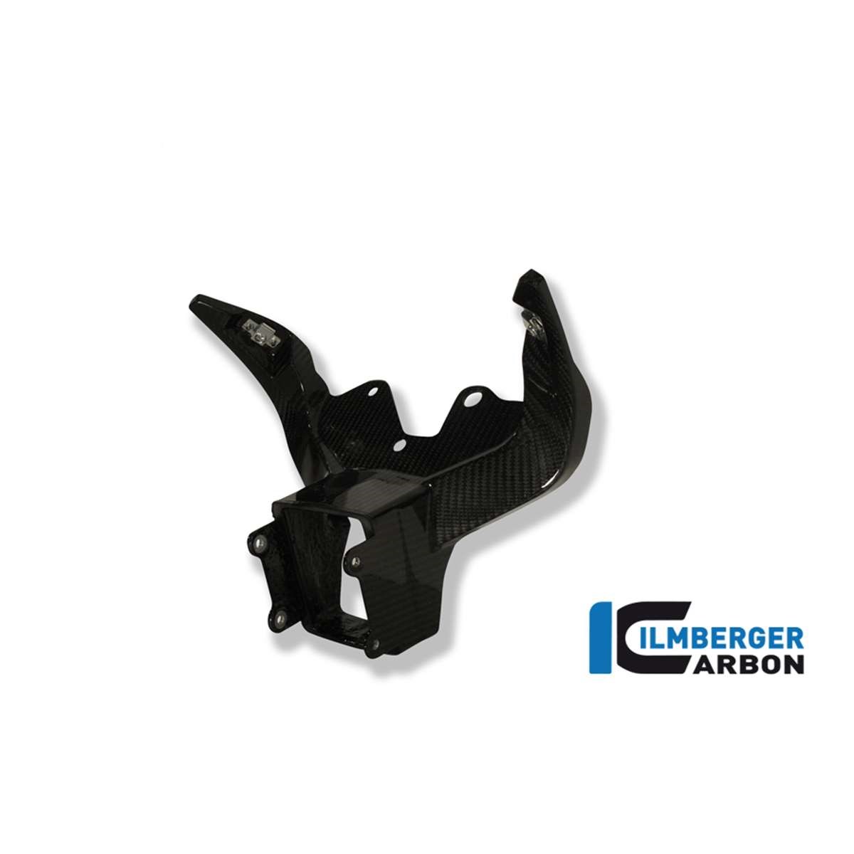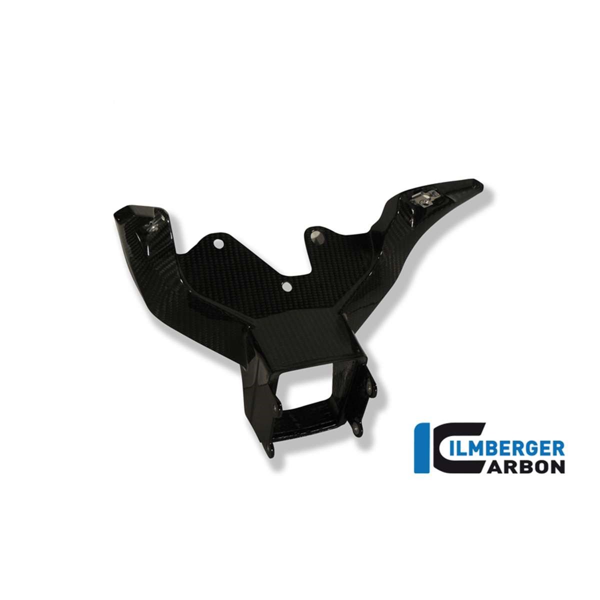 Der vordere Verkleidungsträger/Instrumenteträger in Carbon für die BMW S 1000 RR ersetzt den serienmässigen Armaturenhalter. Das serienmässig schon sehr leichte Bauteil konnte durch die geschickte Verwendung von Carbon nochmals im Gewicht reduziert werden. Der Verkleidungsträger ist nur für den Racingbetrieb gedacht. Es sind am Träger keine Scheinwerferaufnahmen eingearbeitet.