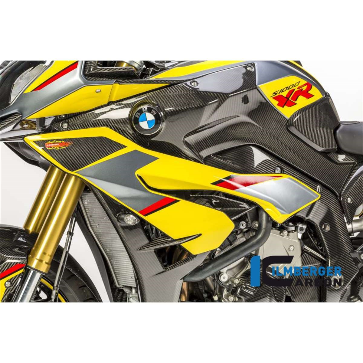 Das Verkleidungsseitenteil in Carbon für die BMW S 1000 XR ersetzt das originale Bauteil unter Verwendung der originalen Befestigungspunkte. Im Vordergrund stehen Gewichtsersparnis (in der Regel Einsparung von ca. 70% im Vergleich zum originalen Bauteil) und höhere Steifigkeit.