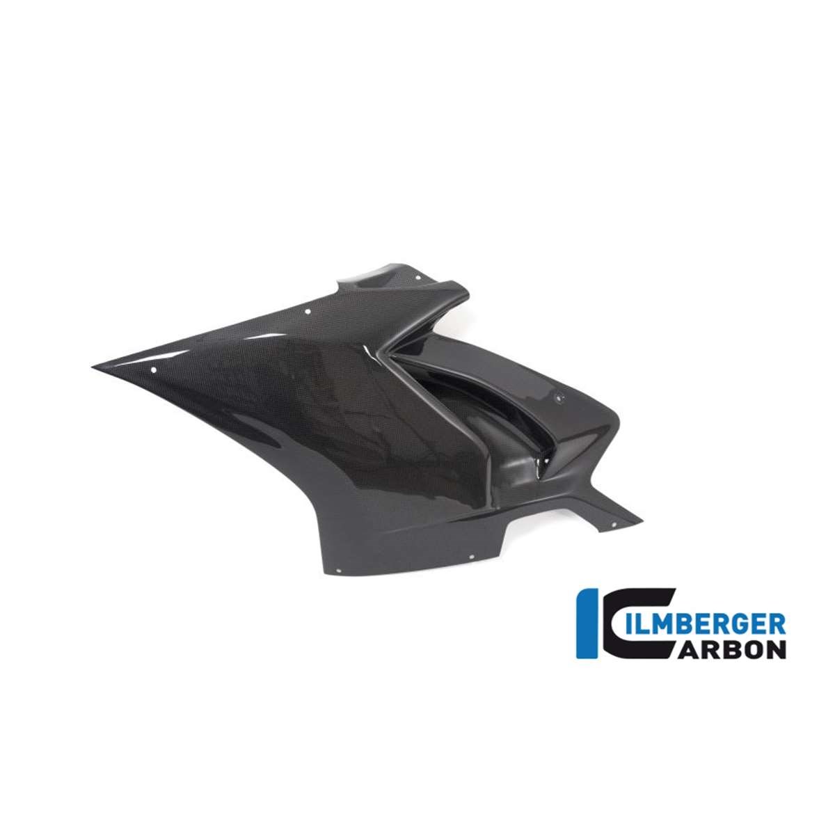 Das Verkleidungsseitenteil in Carbon für die Ducati Panigale V4 / V4 S Racing ersetzt das originale Bauteil unter Verwendung der originalen Befestigungspunkte. Im Vordergrund stehen Gewichtsersparnis (in der Regel Einsparung von ca. 70% im Vergleich zum originalen Bauteil) und höhere Steifigkeit. Das Carbonteil wurde nach den neuesten Richtlinien im Autoklaven komplett aus Prepreg (siehe FAQ) Material gefertigt und im nächsten Schritt, wie bei uns üblich, zum Schutz gegen Umwelteinflüsse mit einer klaren Kunststoffbeschichtung überzogen. Diese Kunststoffbeschichtung übertrifft den sonst üblichen Klarlacküberzug in der Schutzwirkung, Kratzfestigkeit und Beständigkeit enorm. Aber nicht nur technisch kann die Beschichtung punkten, sondern sie unterstreicht auch die dreidimensionale Wirkung der Carbonstruktur nochmals deutlich.