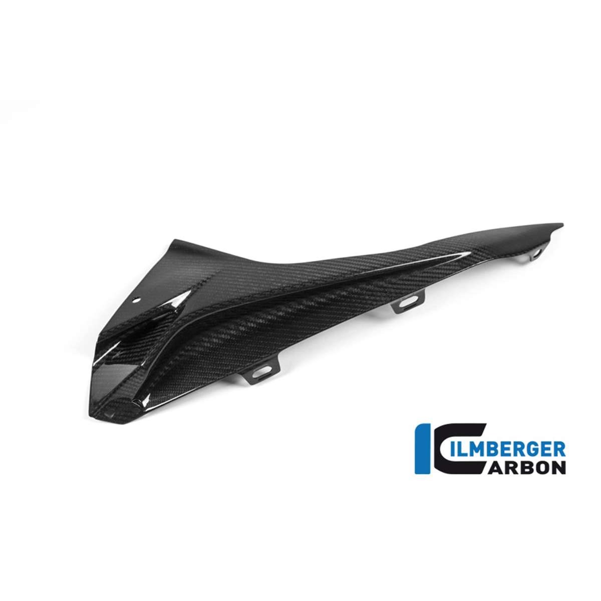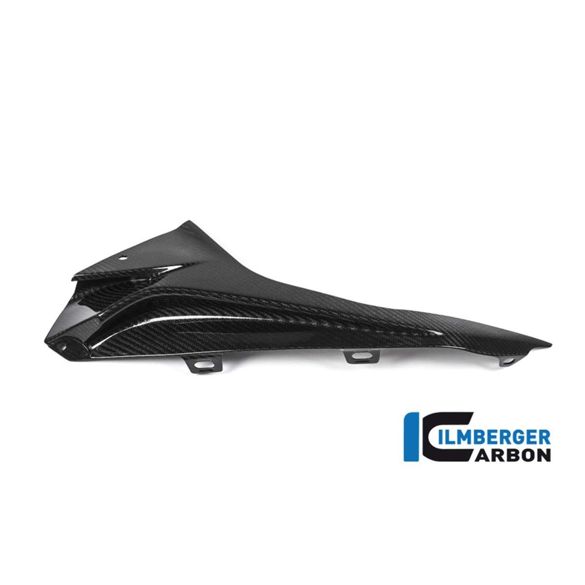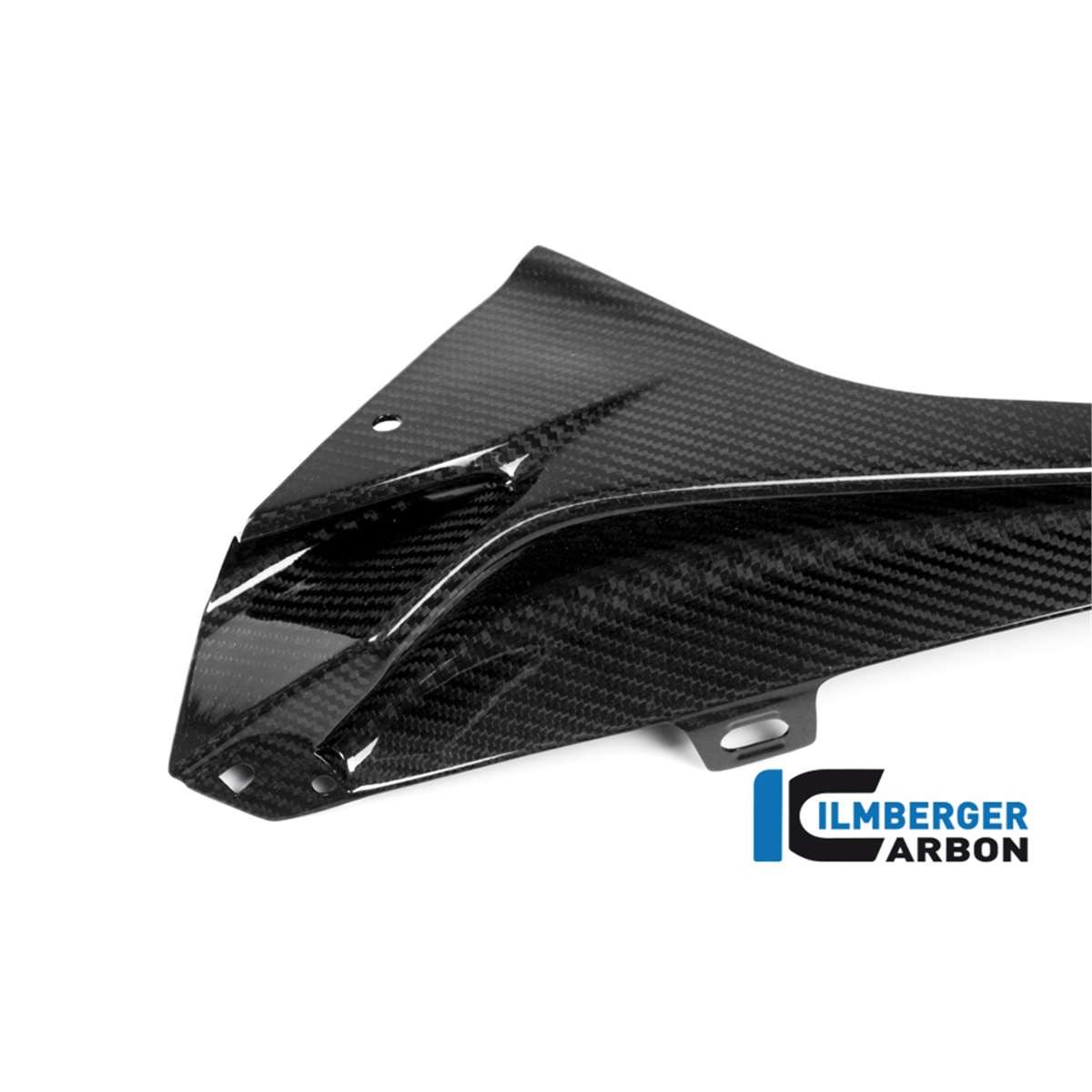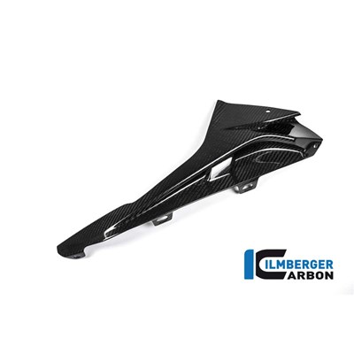 Der obere Teil des Verkleidungsseitenteils (ehemals Plakettenträger) in Carbon für die BMW S 1000 RR Straße (2015 – aktuell) ersetzt das originale Bauteil unter Verwendung der originalen Befestigungspunkte. Im Vordergrund stehen Gewichtsersparnis (in der Regel Einsparung von ca. 70% im Vergleich zum originalen Bauteil) und höhere Steifigkeit. Das Carbonteil wurde nach den neuesten Richtlinien im Autoklaven komplett aus Prepreg (siehe FAQ) Material gefertigt und im nächsten Schritt, wie bei uns üblich, zum Schutz gegen Umwelteinflüße mit einer klaren Kunststoffbeschichtung überzogen. Diese Kunststoffbeschichtung übertrifft den sonst üblichen Klarlacküberzug in der Schutzwirkung, Kratzfestigkeit und Beständigkeit enorm. Aber nicht nur technisch kann die Beschichtung punkten, sondern sie unterstreicht auch die dreidimensionale Wirkung der Carbonstruktur nochmals deutlich.