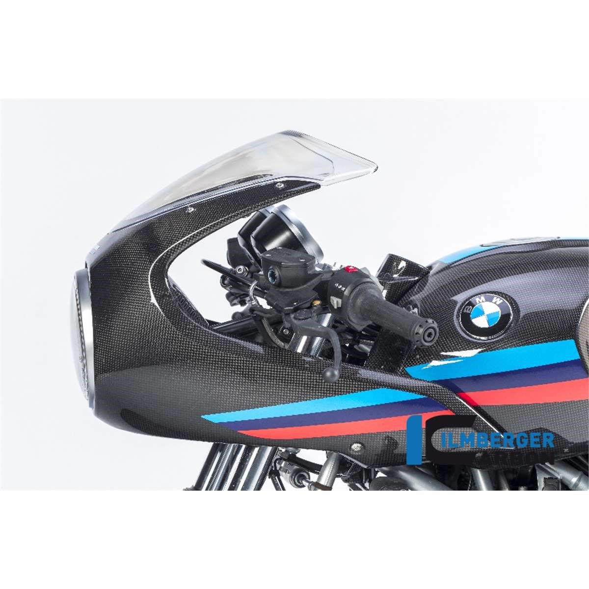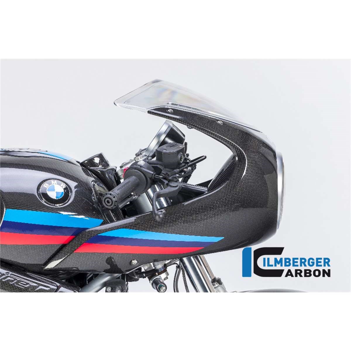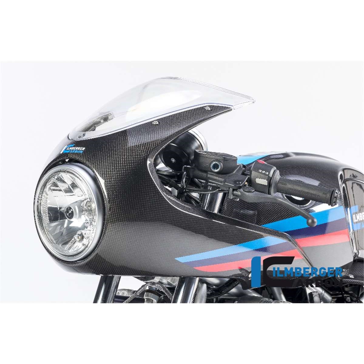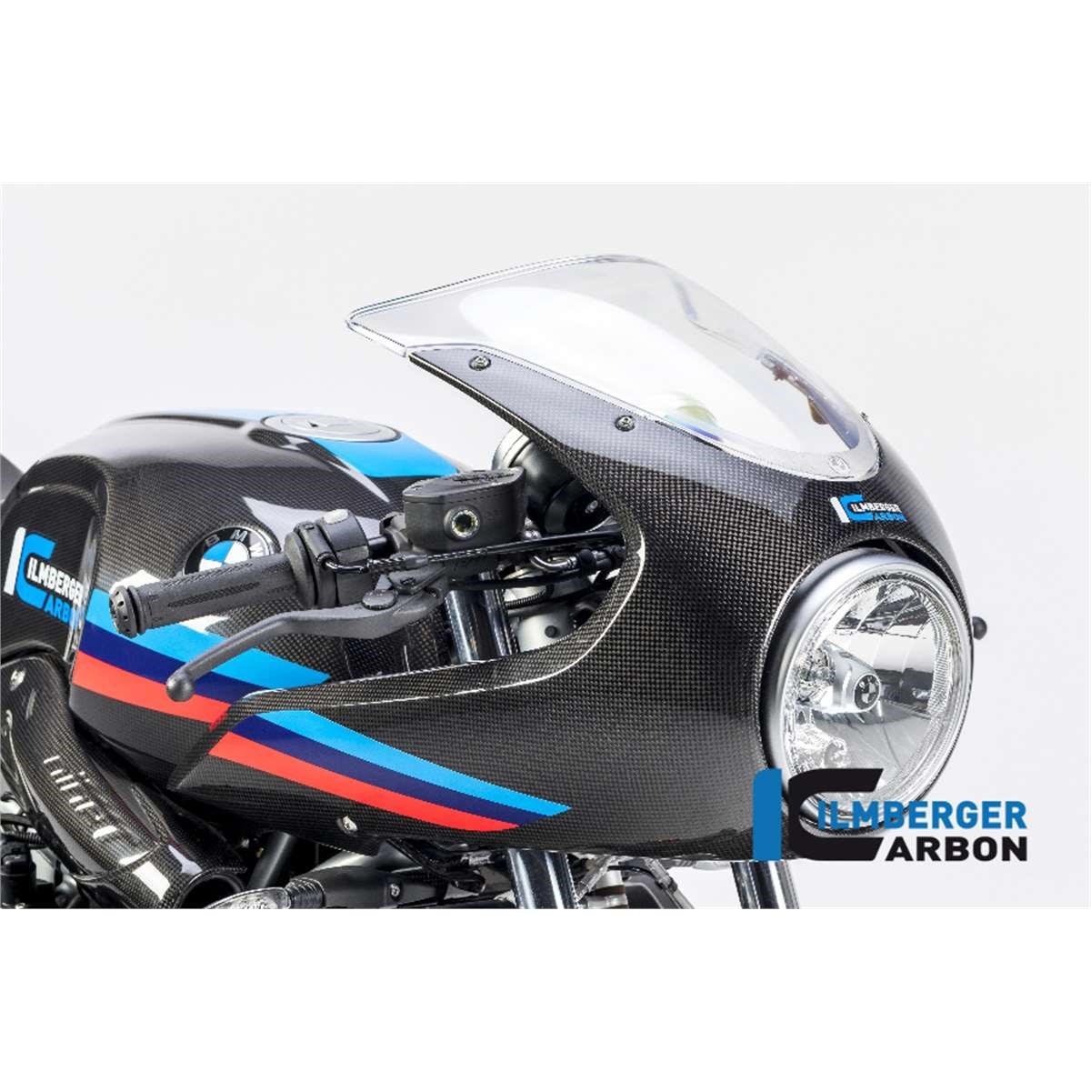Die vordere Verkleidung in Carbon in der höheren Variante "Strasse" für mehr Windschutz für die BMW R NineT wird an den Instrumenten mittels einer im Lieferumfang enthaltenen extrem formschönen und leichten Carbon Halterung an der R NineT Racer '17 befestigt. Unsere Verkleidung in Carbon betont das Design der R NineT.