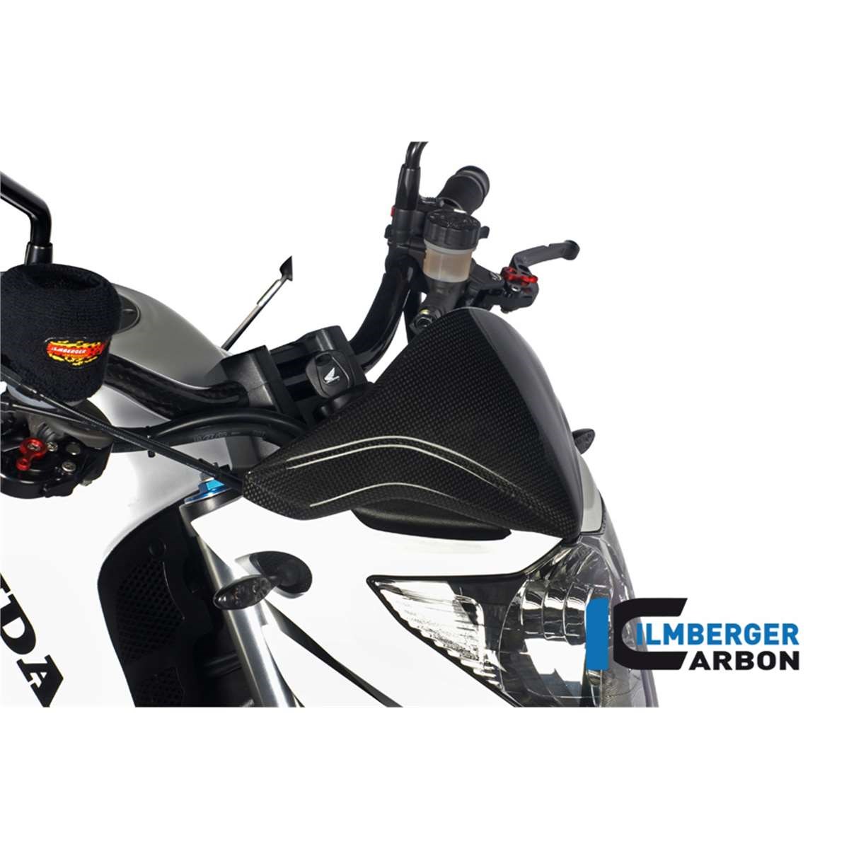 Das Windschild in Carbon für die Honda CB 1000 R  ersetzt das originale Bauteil unter Verwendung der originalen Befestigungspunkte. Im Vordergrund stehen Gewichtsersparnis (in der Regel Einsparung von ca. 70% im Vergleich zum originalen Bauteil) und höhere Steifigkeit.  Das Carbonteil wurde nach den neuesten Richtlinien im Autoklaven komplett aus Prepreg (siehe FAQ) Material gefertigt und im nächsten Schritt, wie bei uns üblich, zum Schutz gegen Umwelteinflüße mit einer klaren Kunststoffbeschichtung überzogen.