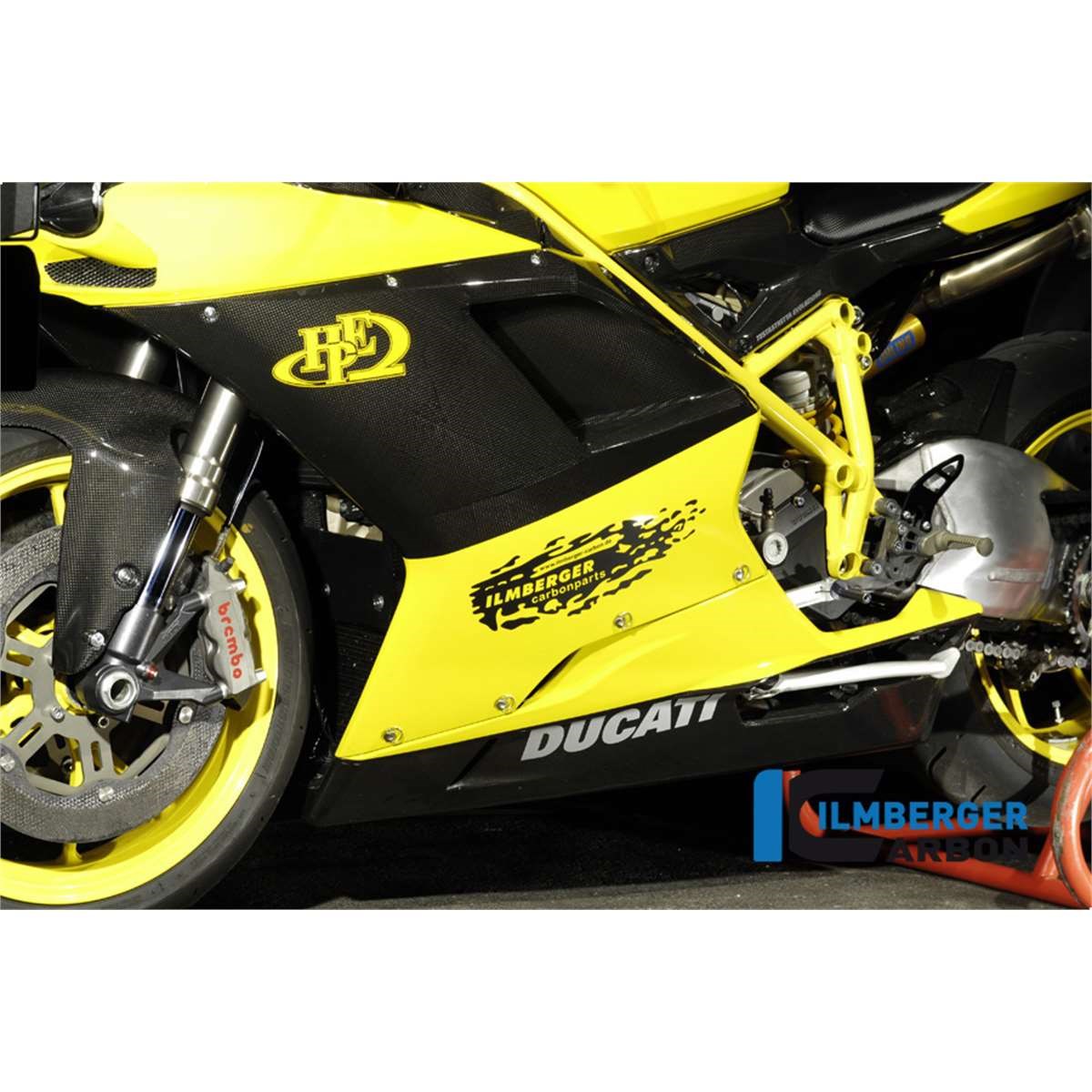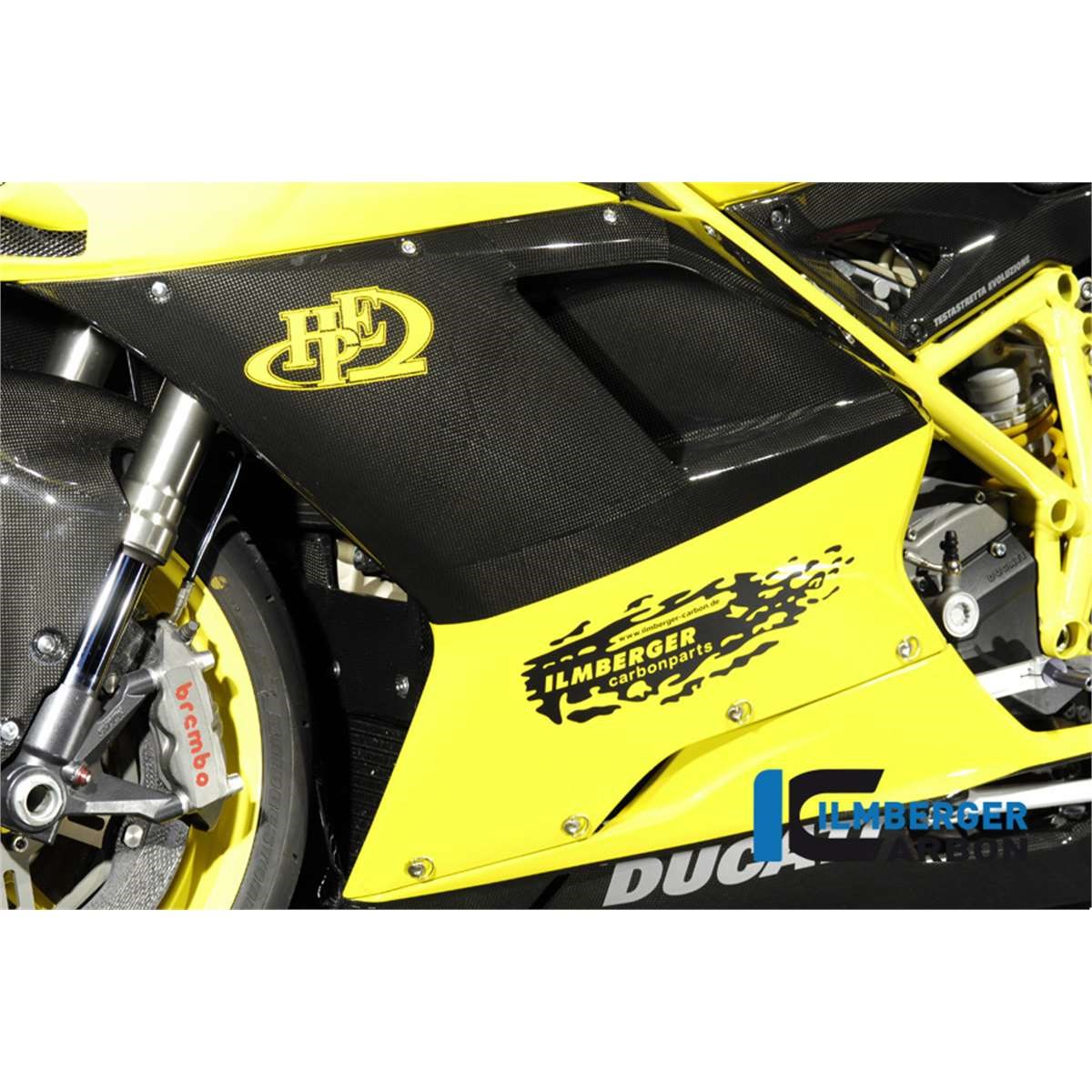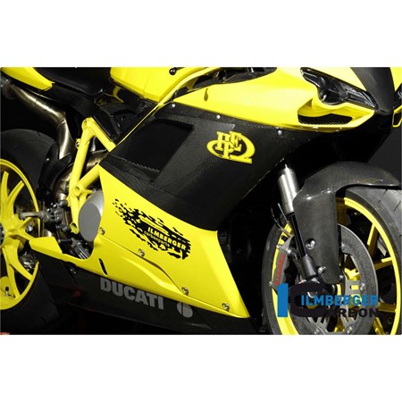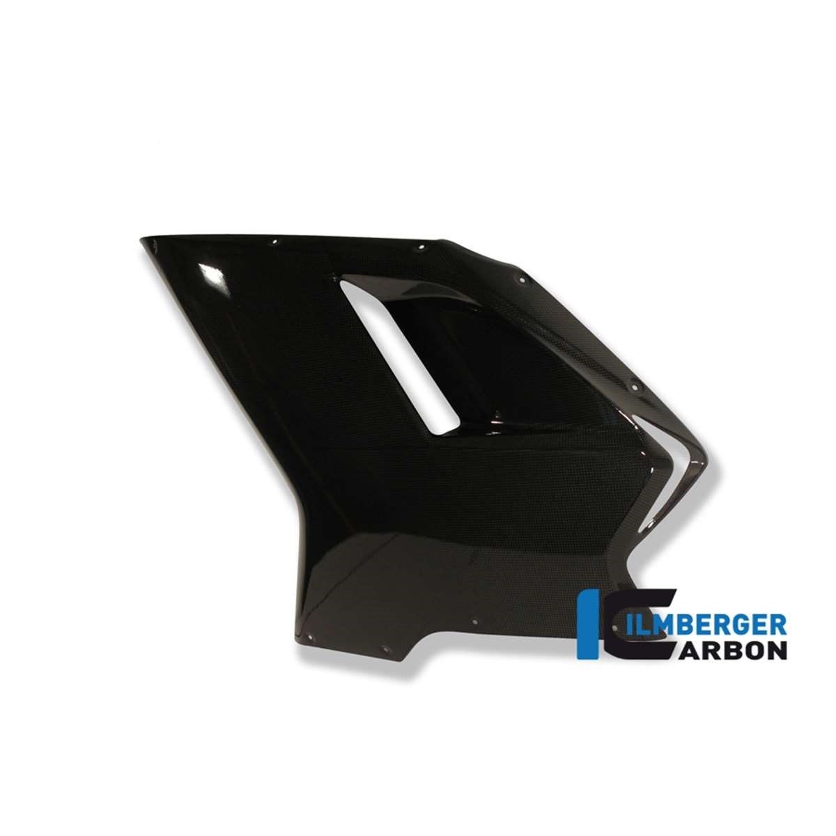 Das linke Verkleidungsseitenteil in Carbon für die Ducati 848/1098/1198 ersetzt das originale Bauteil unter Verwendung der originalen Befestigungspunkte. Im Vordergrund stehen Gewichtsersparnis (in der Regel Einsparung von ca. 70% im Vergleich zum originalen Bauteil) und höhere Steifigkeit.  Das Carbonteil wurde nach den neuesten Richtlinien im Autoklaven komplett aus Prepreg (siehe FAQ) Material gefertigt und im nächsten Schritt, wie bei uns üblich, zum Schutz gegen Umwelteinflüße mit einer klaren Kunststoffbeschichtung überzogen.
