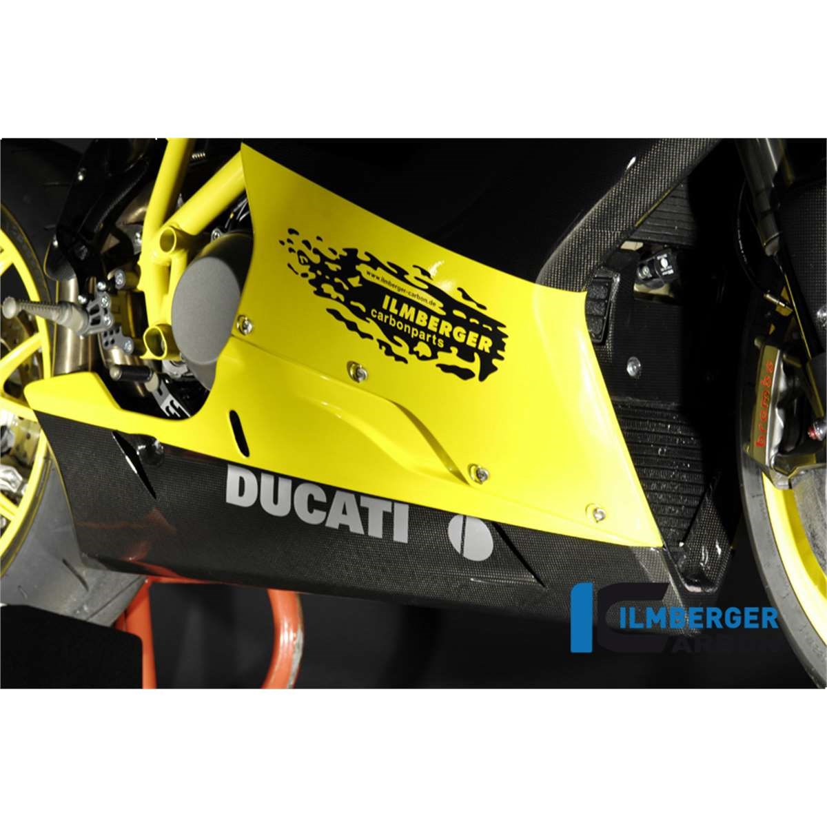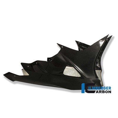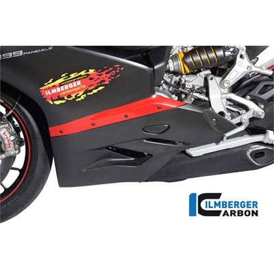 Das Verkleidungsunterteil in Carbon für die Ducati Modelle 848/1098/1198 ist im unteren Bereich deutlich geschlossener als im Original ausgeführt. Dadurch wird die Verschmutzung des unteren Bereichs am Motorrad bei möglichst guter Wärmeableitung so gering wie möglich gehalten.