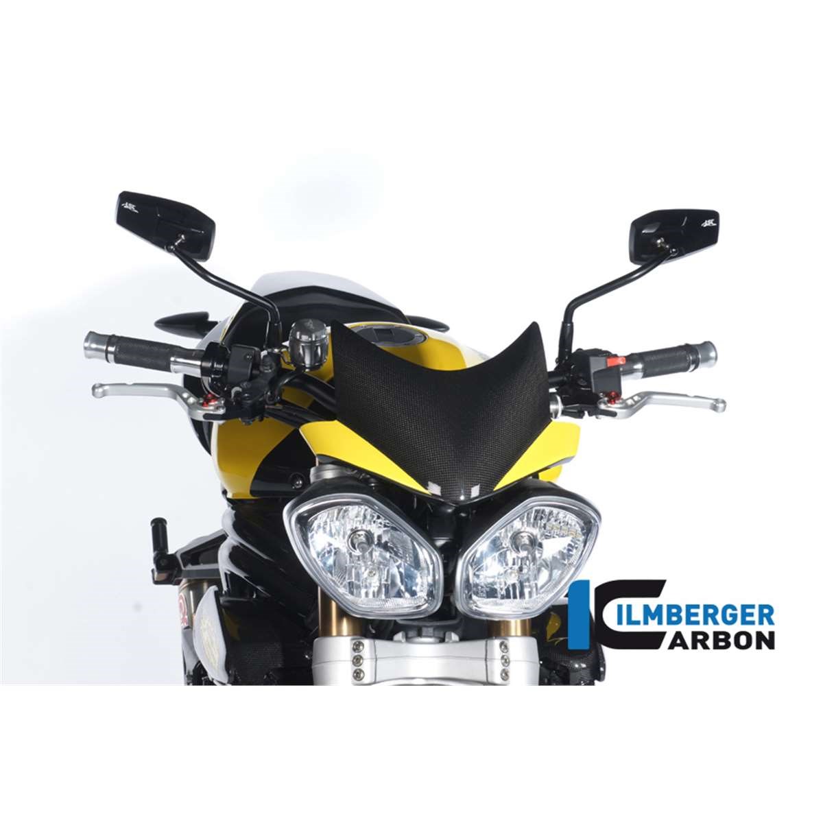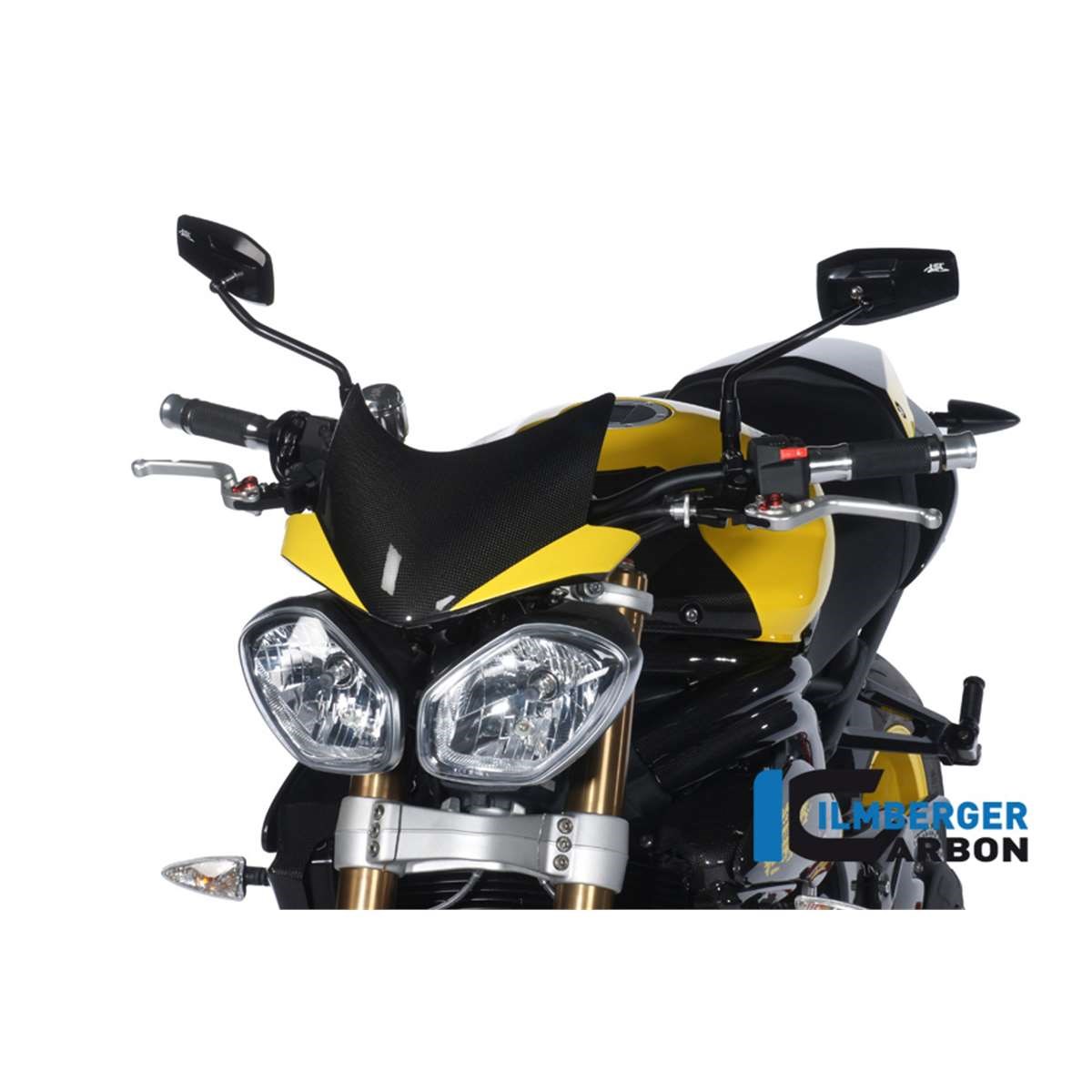 Das Windschild in Carbon für die Triumph Speed Triple ersetzt das originale Bauteil unter Verwendung der originalen Befestigungspunkte. Im Vordergrund stehen Gewichtsersparnis (in der Regel Einsparung von ca. 70% im Vergleich zum originalen Bauteil) und höhere Steifigkeit.  Das Carbonteil wurde nach den neuesten Richtlinien im Autoklaven komplett aus Prepreg (siehe FAQ) Material gefertigt und im nächsten Schritt, wie bei uns üblich, zum Schutz gegen Umwelteinflüße mit einer klaren Kunststoffbeschichtung überzogen.
