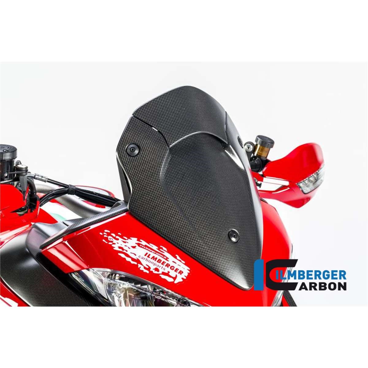 Das Windschild in Carbon, matte Ausführung, für die Ducati Multistrada DVT (ab Baujahr 2015) und die Multistrada Enduro (ab Baujahr 2016) ersetzt das originale Bauteil unter Verwendung der originalen Befestigungspunkte. Das Carbonwindschild gibt der Multistrada einen ausgesprochen sportlichen Look - nicht ohne jedoch die Funktion ausser Acht zu lassen. Zwar bietet das Windschild nicht den gleichen Windschutz wie die originale Tourenscheibe, der Oberkörper wird aber dennoch wirkungsvoll entlastet. Das Erleben des brachialen Motors wird noch direkter spürbar und durch die neue, geduckte Front, wirkt die Multistrada deutlich angriffslustiger als im Serientrimm. In der matten Ausführung passt das Windschild hervorragend zu den originalen Ducati Performance Carbonteilen, die ebenfalls in matter Oberfläche ausgeliefert werden.
