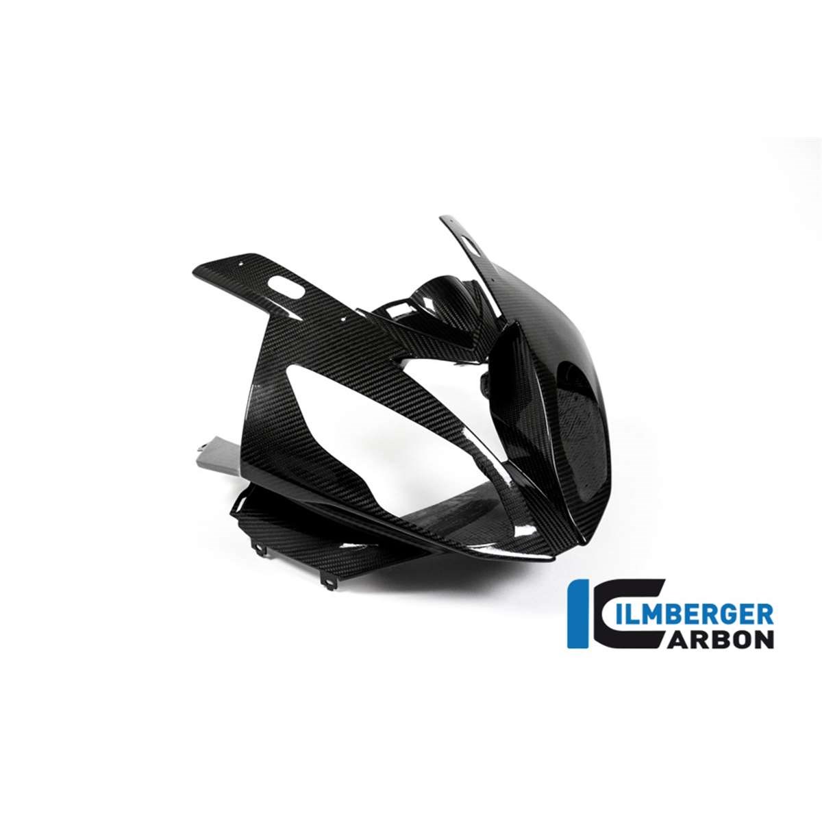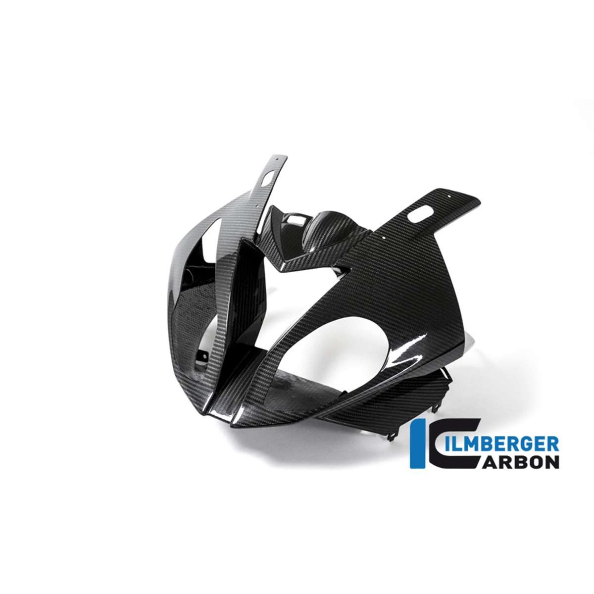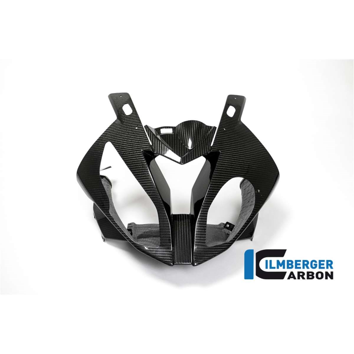 Das einteilige Verkleidungsoberteil in Carbon für die BMW S 1000 RR ab 2015 ersetzt das originale Bauteil unter Verwendung der originalen Befestigungspunkte. Das Oberteil ist einteilig ausgeführt, das Verkleidungsmittelteil ist am Carbonteil bereits fest mit eingearbeitet. Nicht nur der Montageaufwand wird deutlich erleichtert, auch der Gewichtsbilanz kommt dieser Umstand zugute. Es wird kein zusätzlicher Aufwand in der Produktion gescheut um Gewicht zu sparen, um die Speerspitze der Supersport Motorräder noch schärfer und leichter zu machen!